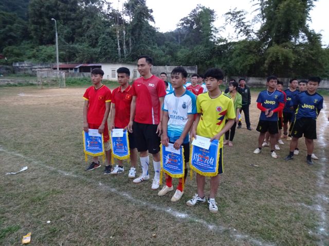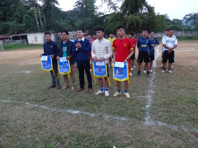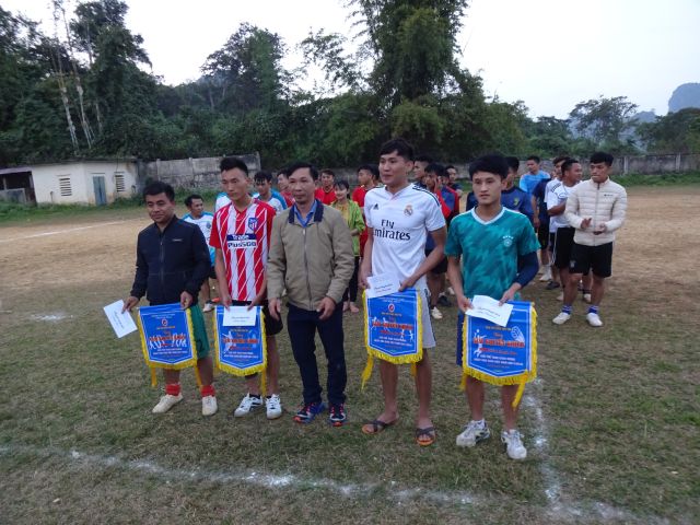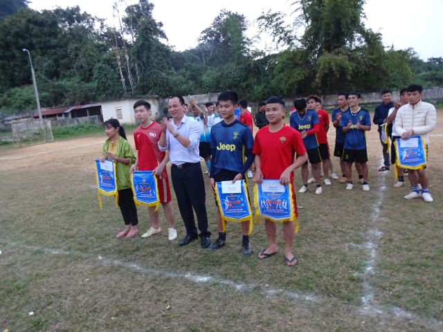 Đồng chí Phạm Đức Bài, phó bì thư đoàn trường trao cờ và tiền thưởng cho các đội đạt giải ba