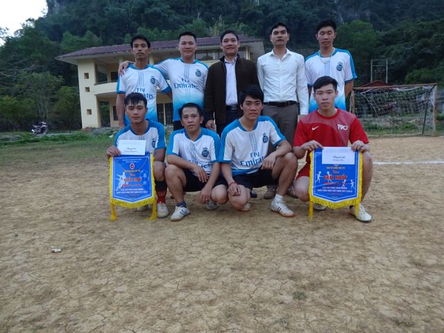 Giáo viên chủ nhiệm và giáo viên bộ môn chụp ảnh lưu niệm cùng đội đạt giải nhất nội dung bóng đá
