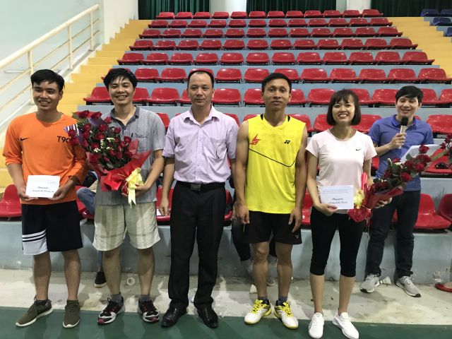 1. Nội dung cầu lông khối Cán bộ, giáo viên: với sự tham gia của 40 vận động viên với 3 nội dung đôi nam và đôi nữ. Kết quả: