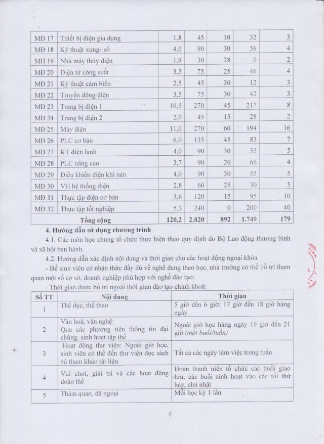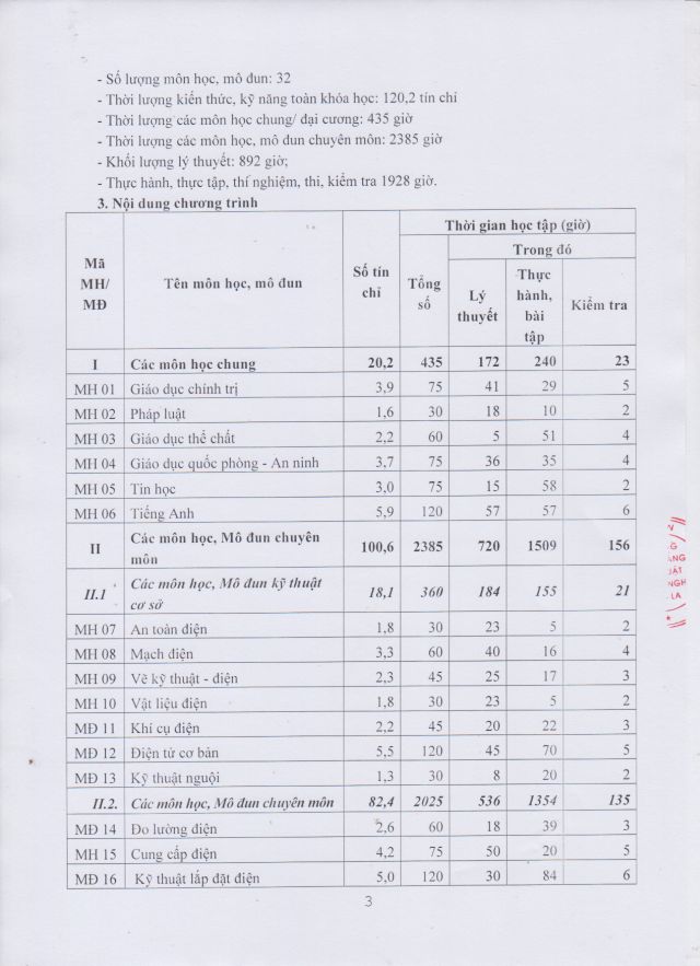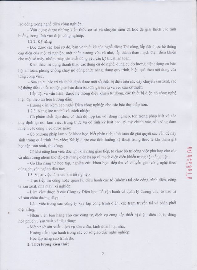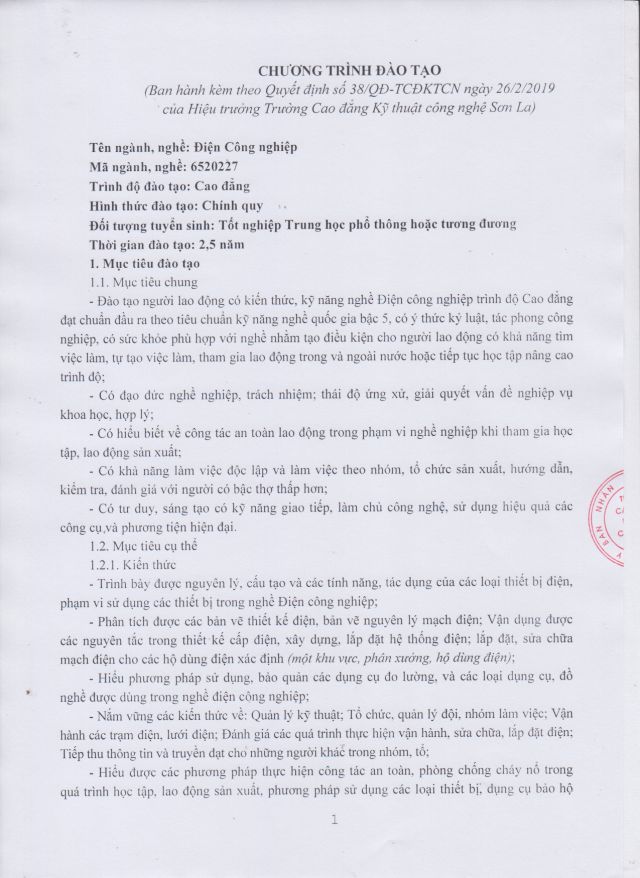 Chương trình đào tạo Cao đẳng Điện công nghiệp