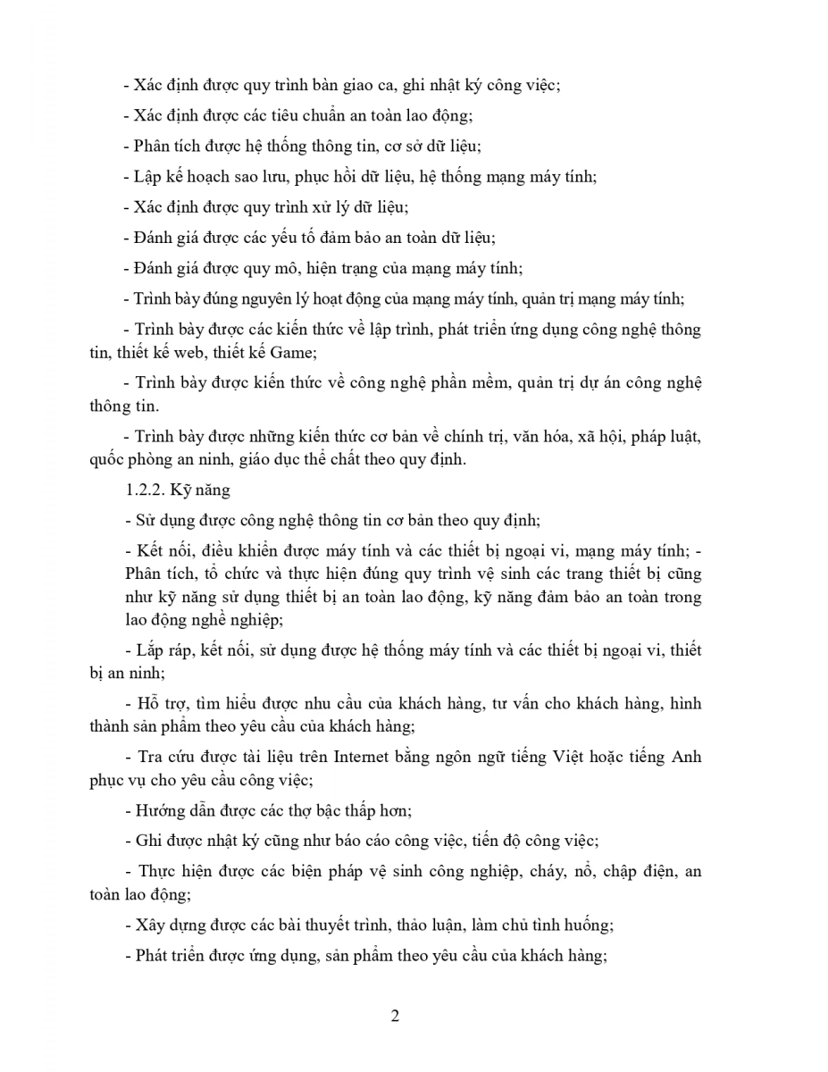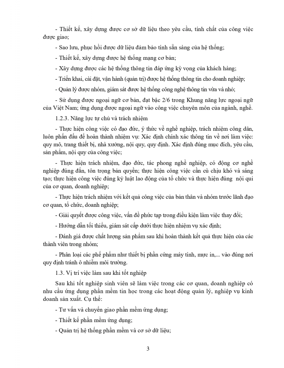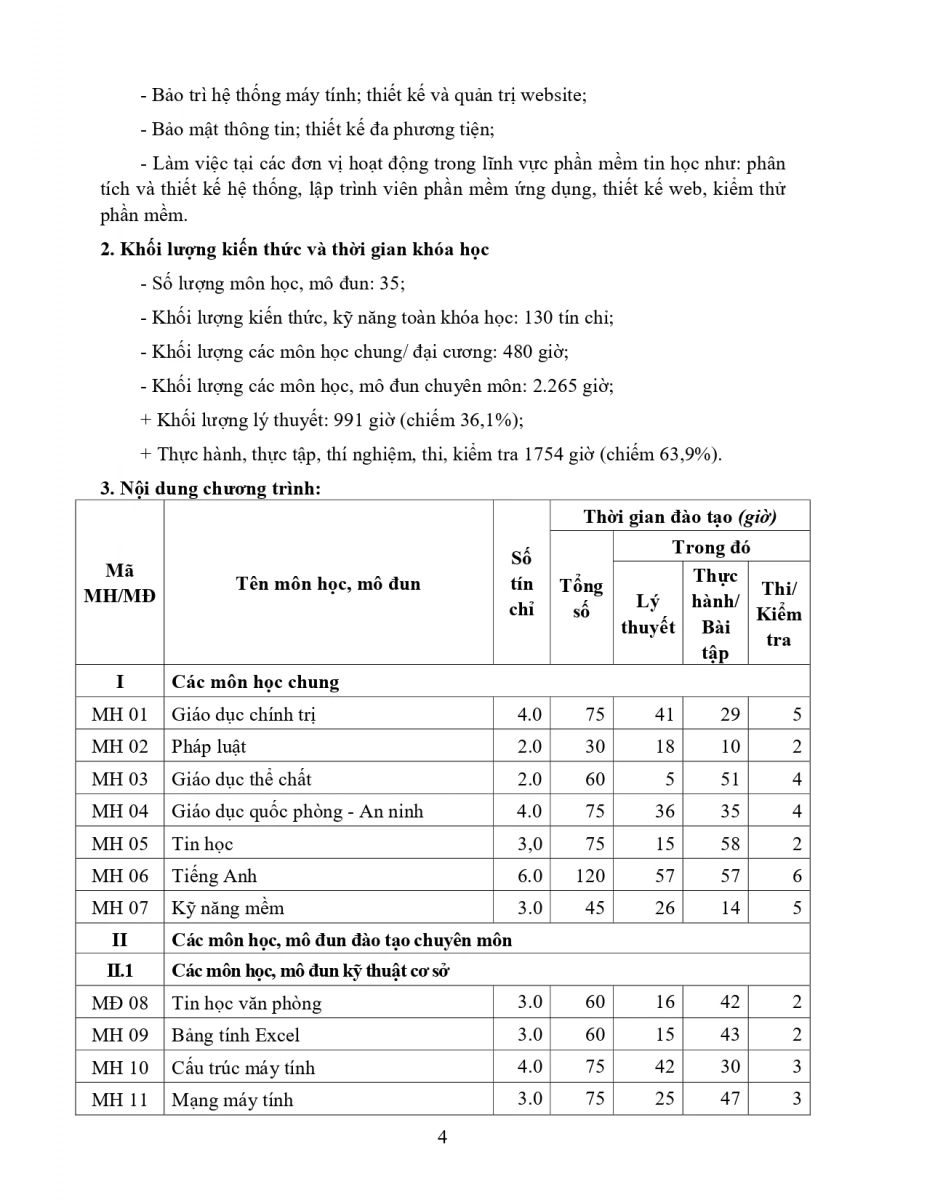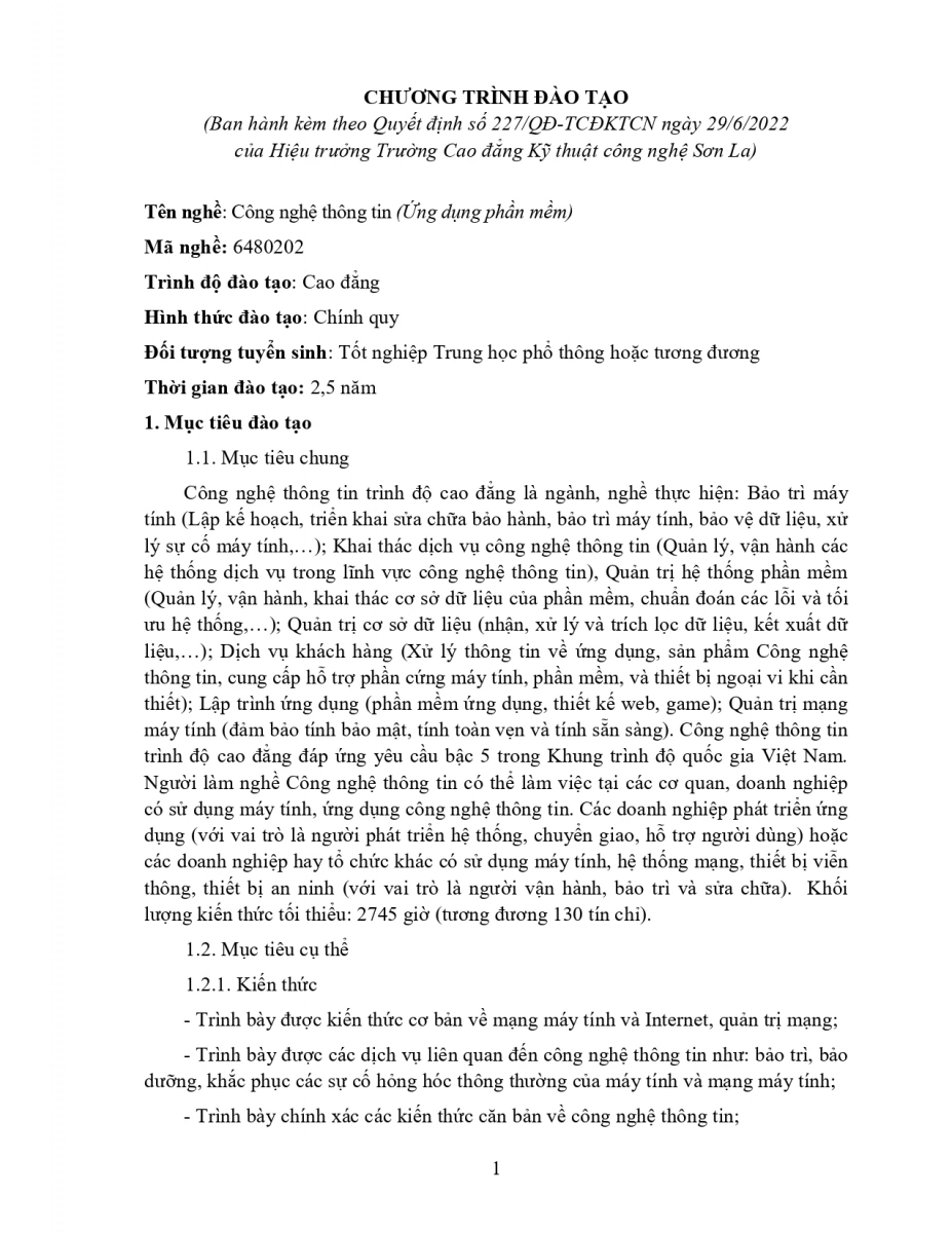 Chương trình đào tạo nghề CNTT UDPM hệ Cao đẳng