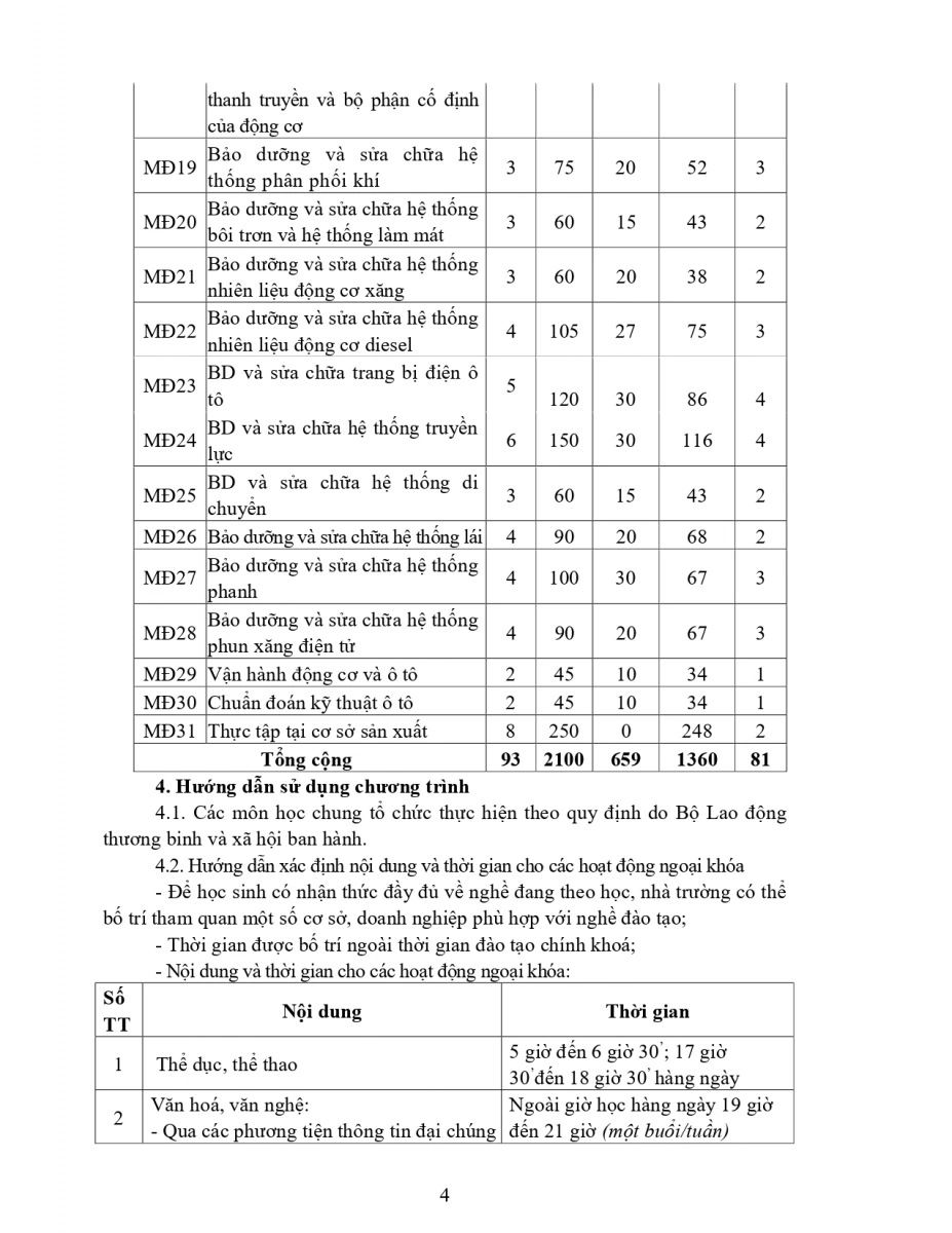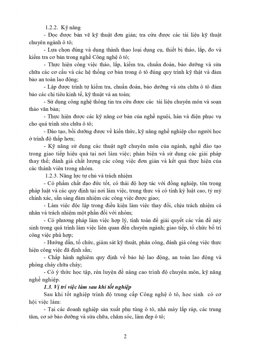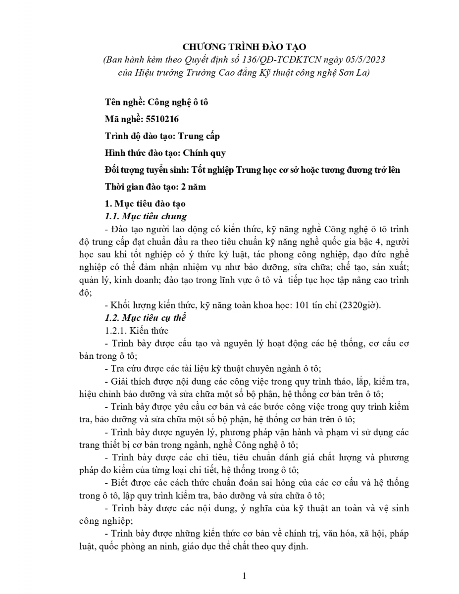 Chương trình đào tạo nghề công nghệ ô tô TĐ TC
