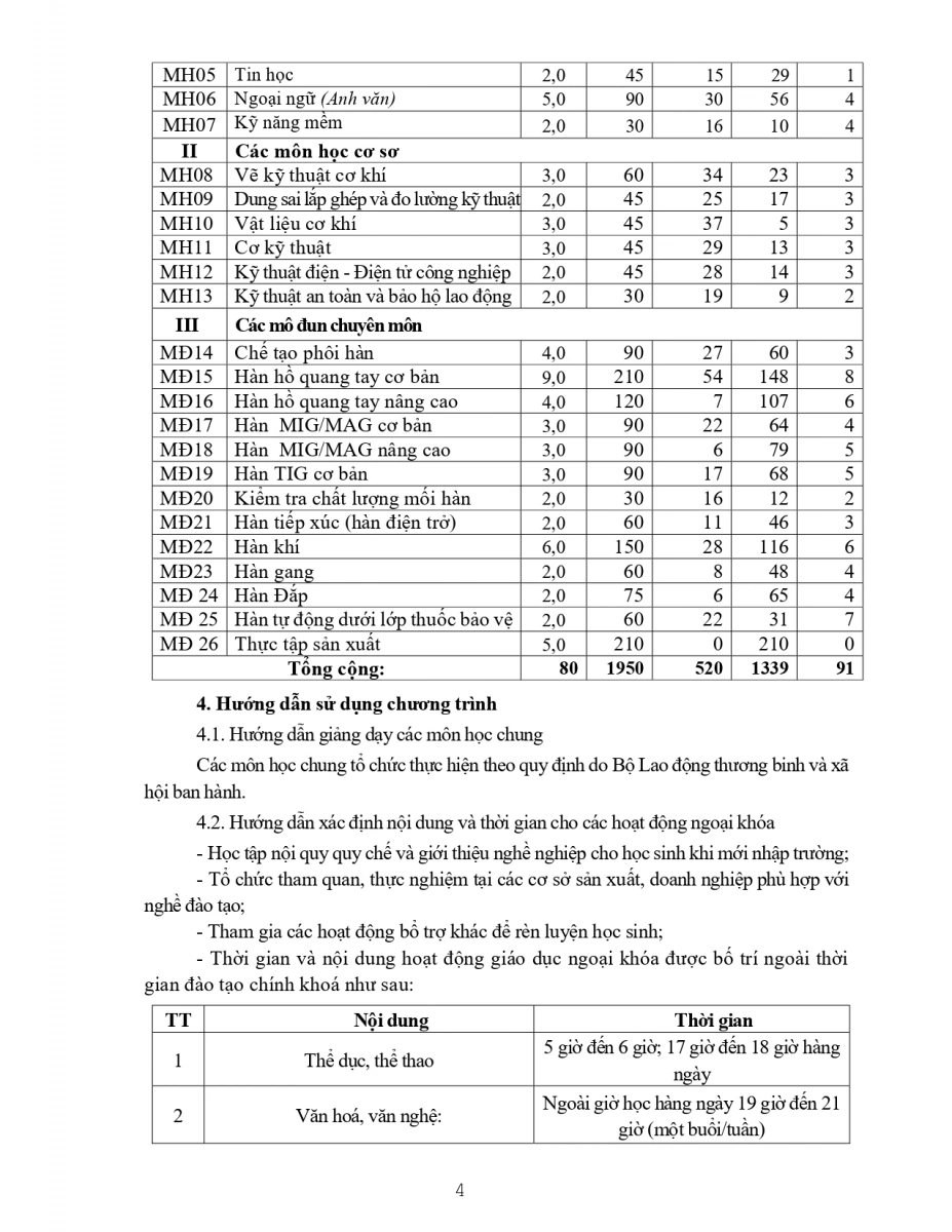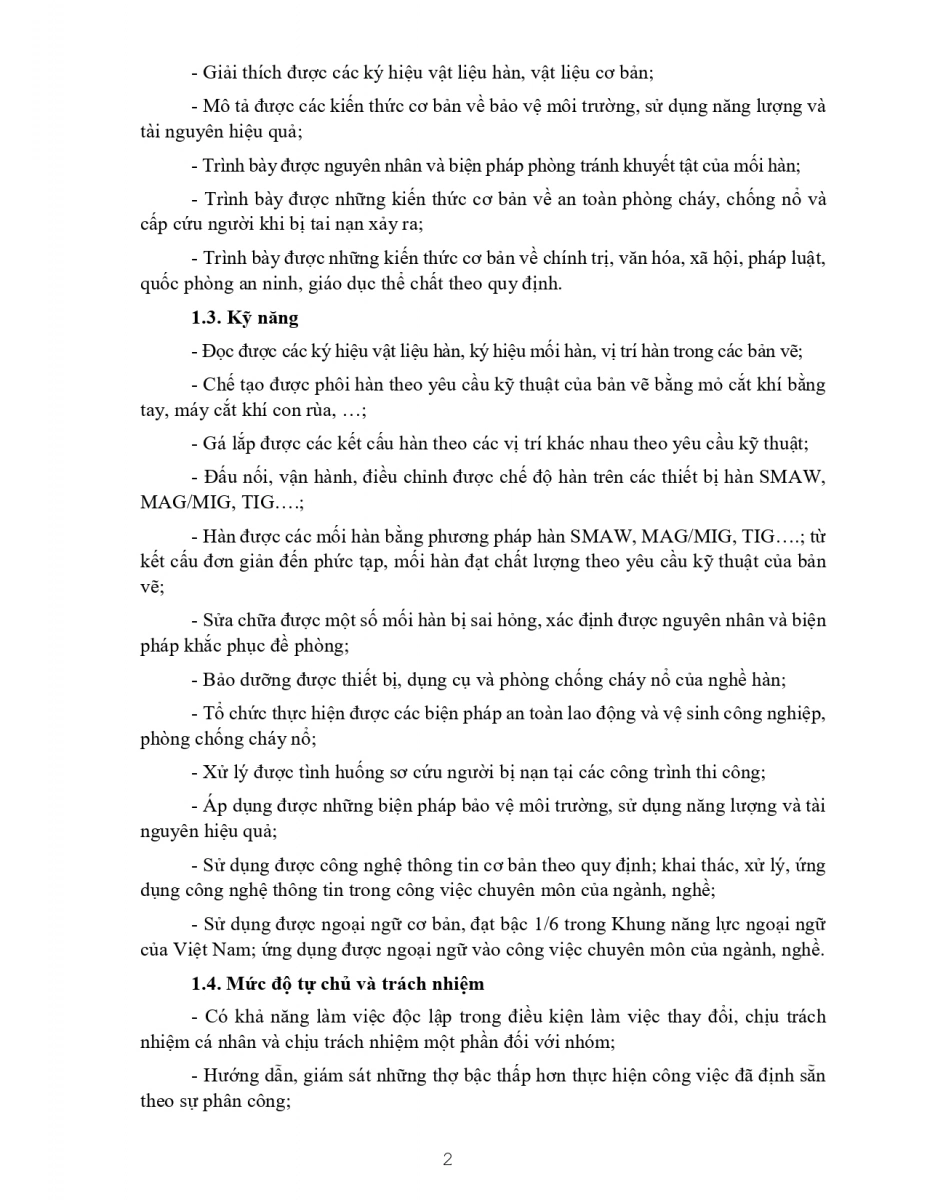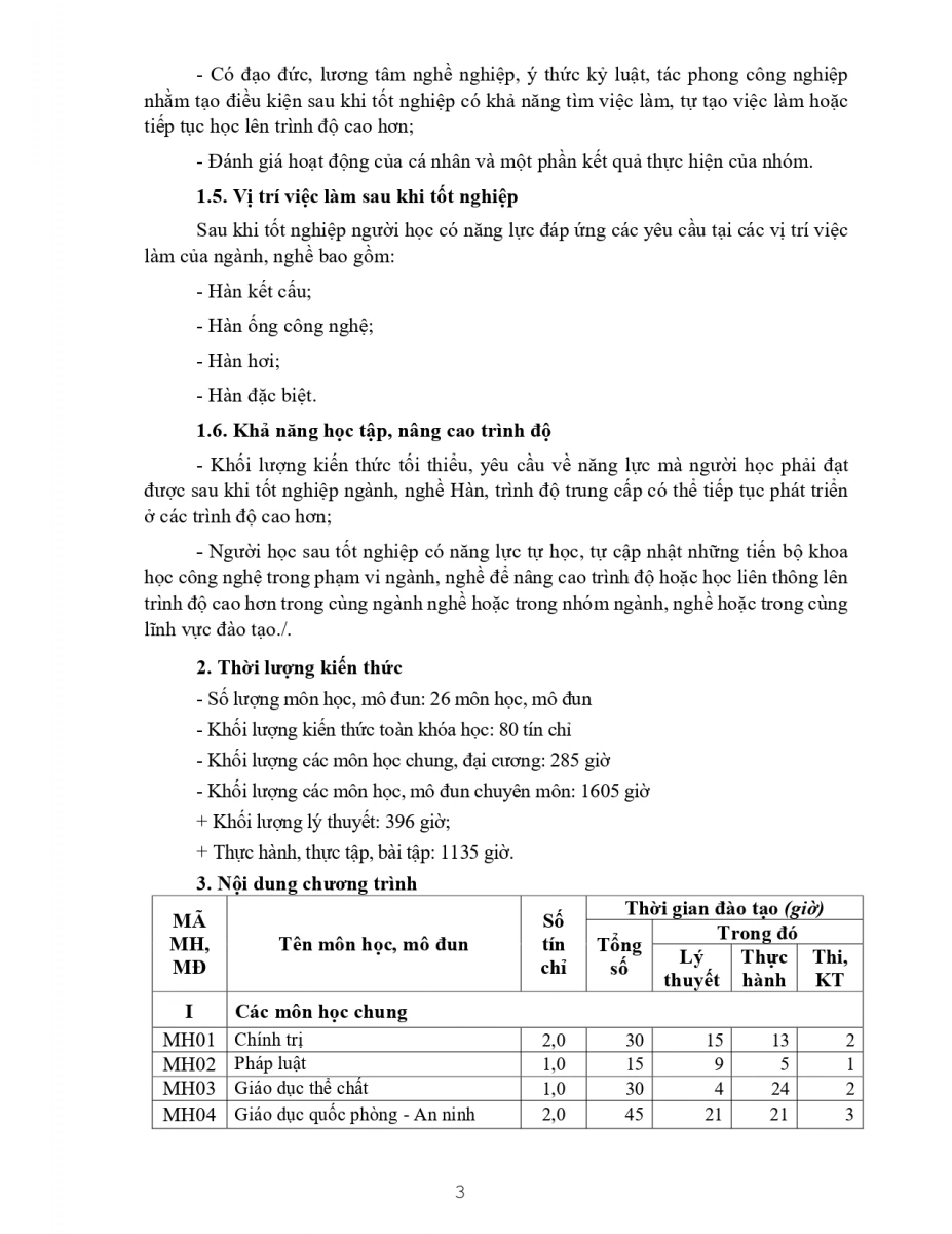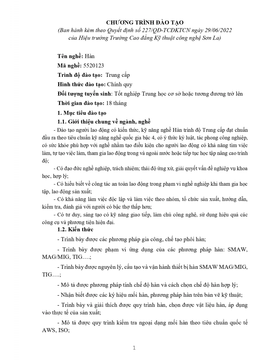 Chương trình đào tạo nghề Hàn
