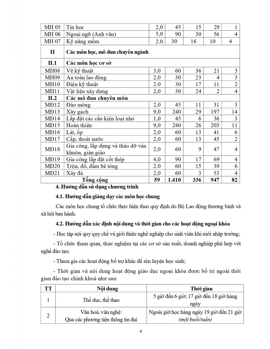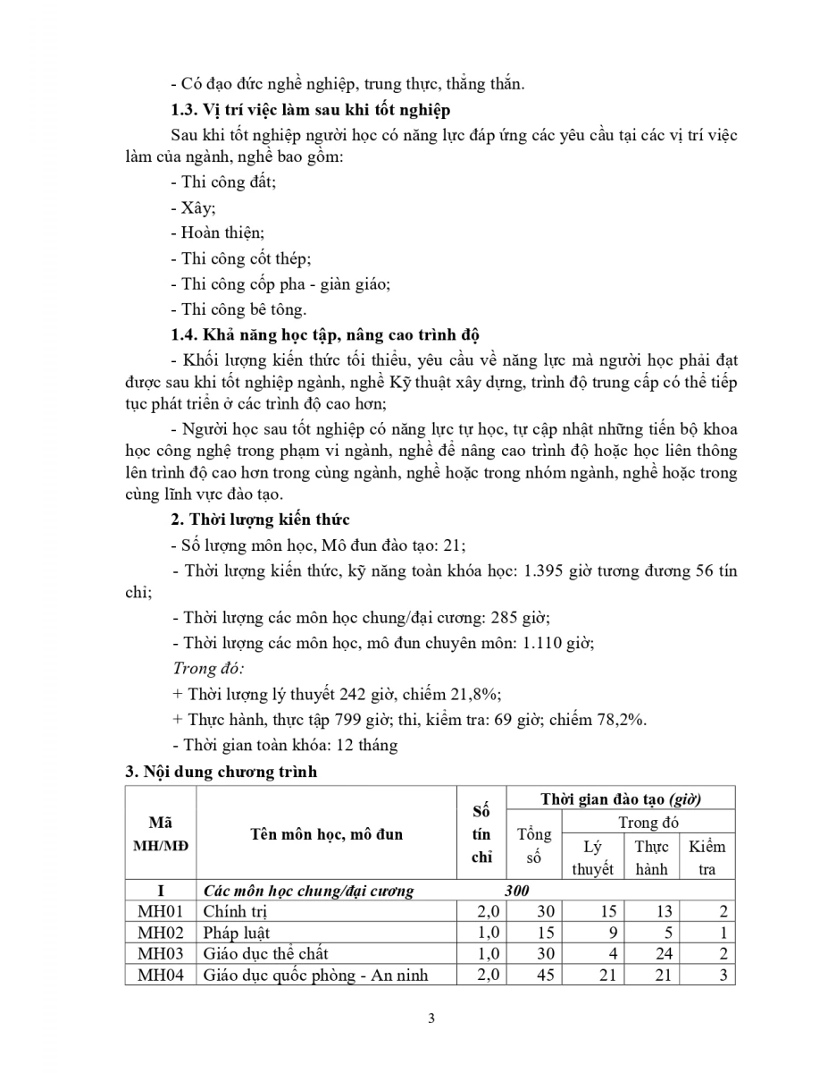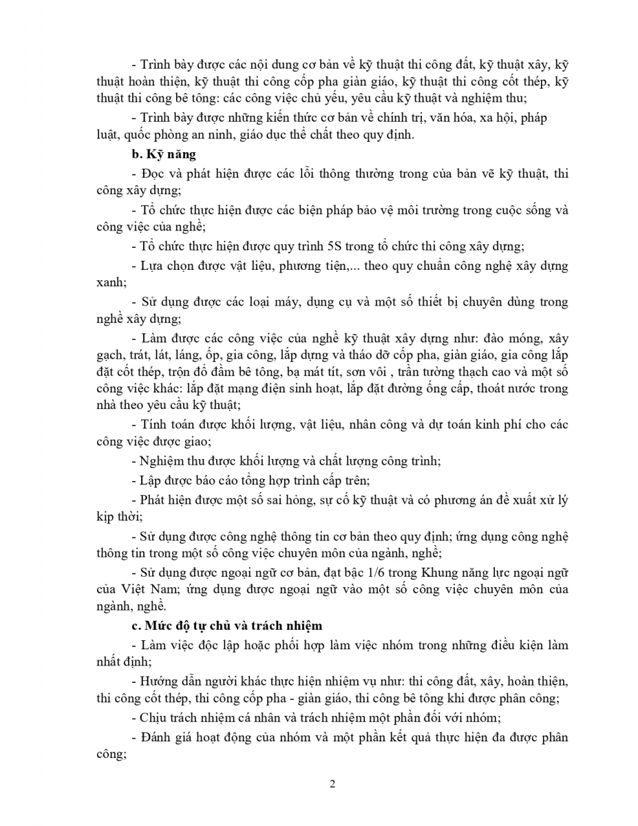 Chương trình đào tạo nghề Kỹ thuật xây dựng
