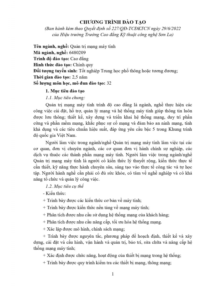 TRƯỜNG CAO ĐẲNG KỸ THUẬT CÔNG NGHỆ SƠN LA