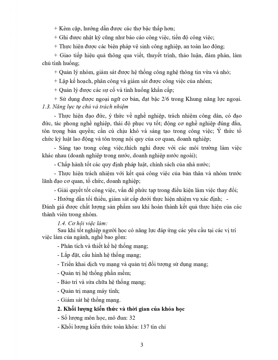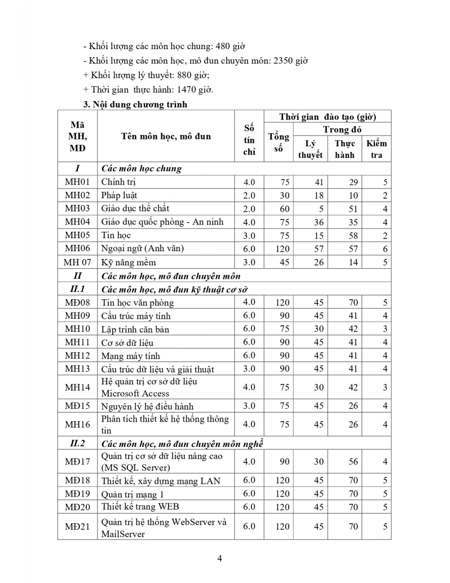 Chương trình đào tạo nghề QTM máy tính TĐ CĐ