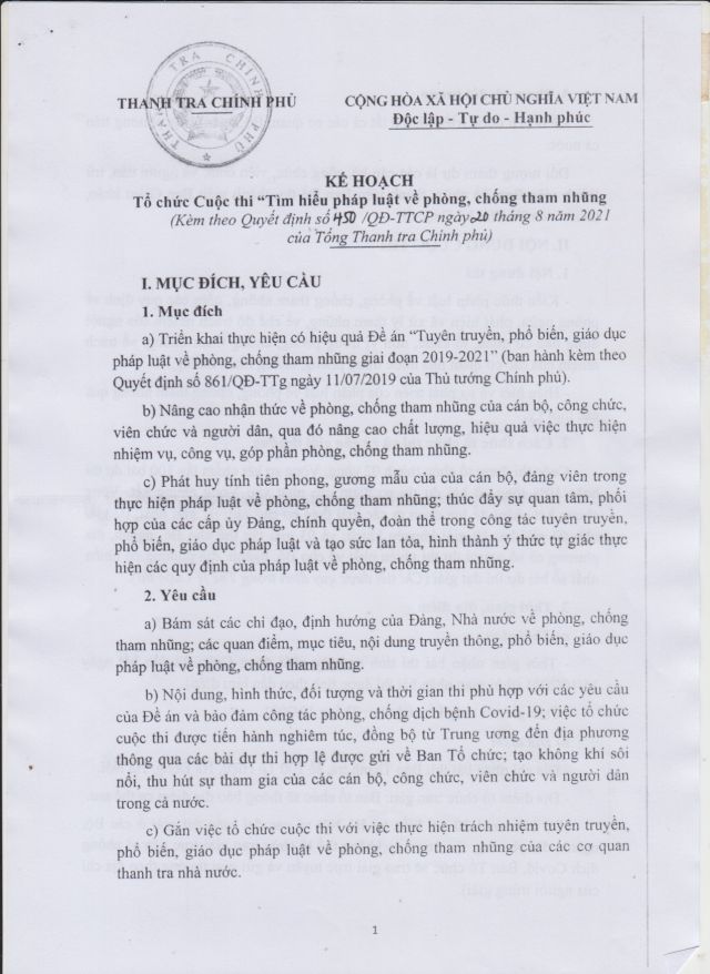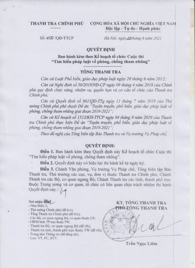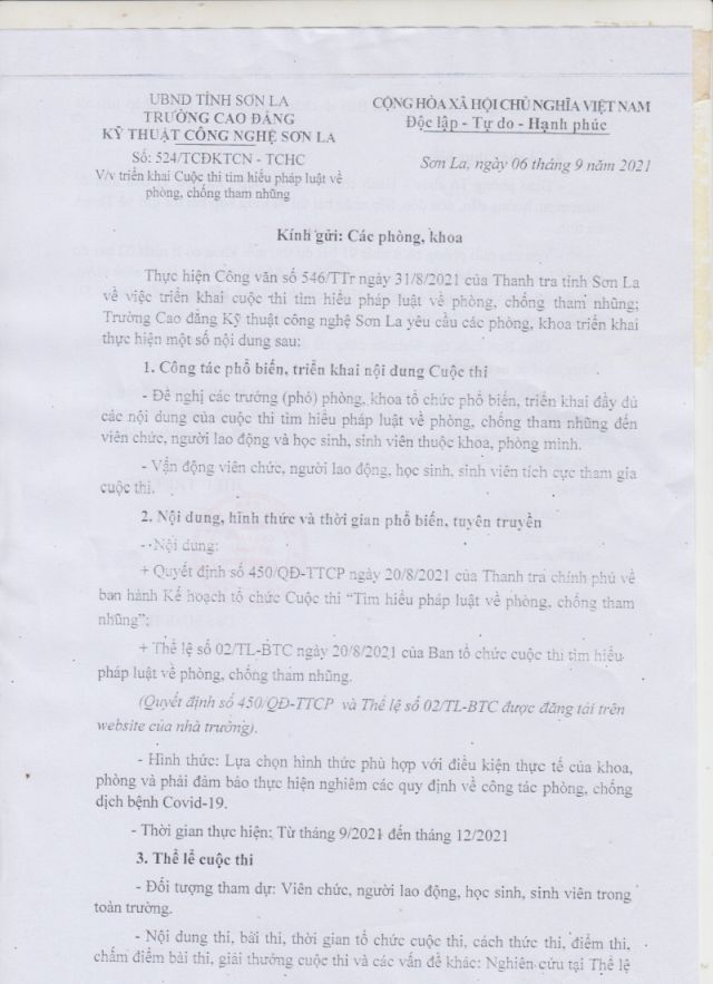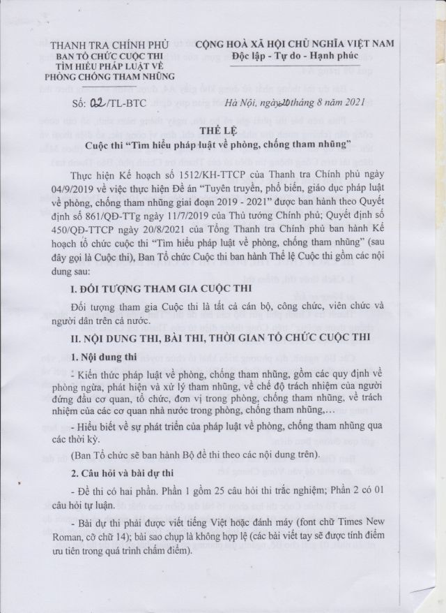 Công văn 524/TCĐKTCN ngày 06/9/2021 về việc triển khai Cuộc thi tìm hiểu pháp luật về phòng, chống tham nhũng
