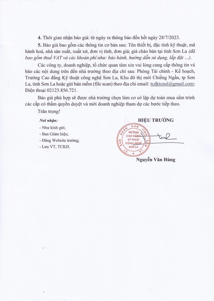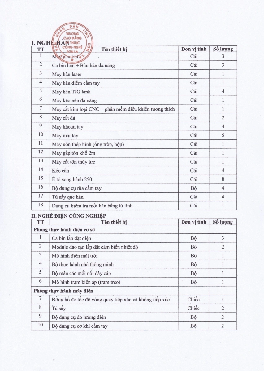 Công văn mời cung cấp báo giá thiết bị dạy học nghề Hàn, nghề Điện công nghiệp
