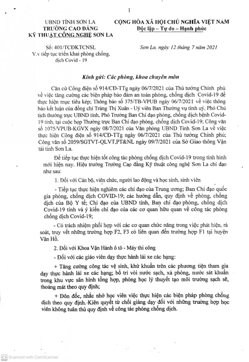 Công văn số 401/TCĐKTCNSL ngày 12/7/2021 về việc tiếp tục triển khai phòng chống dịch Covid - 19