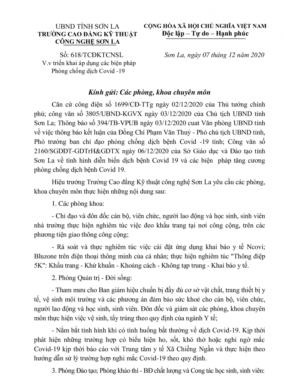 TRƯỜNG CAO ĐẲNG KỸ THUẬT CÔNG NGHỆ SƠN LA