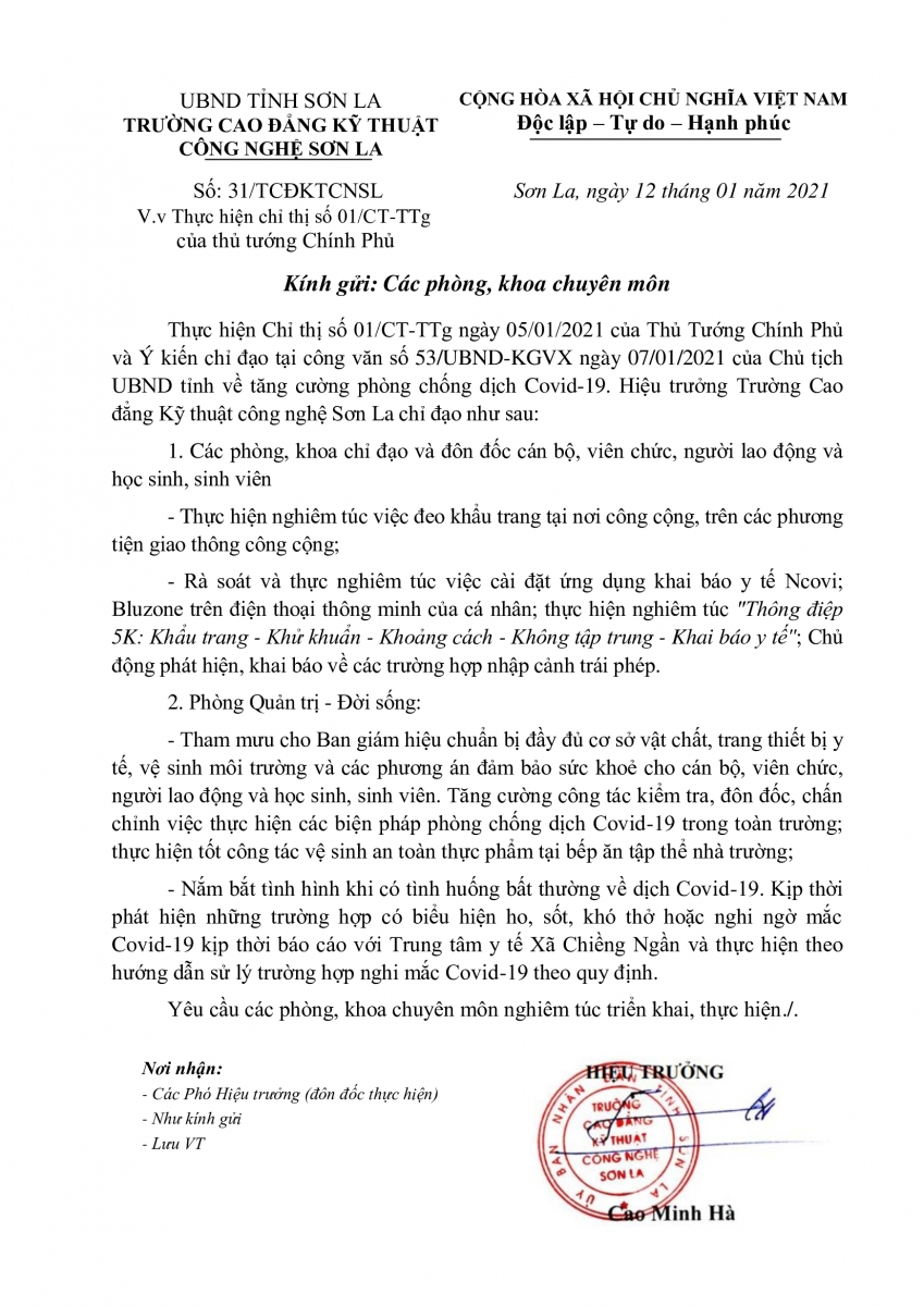 TRƯỜNG CAO ĐẲNG KỸ THUẬT CÔNG NGHỆ SƠN LA
