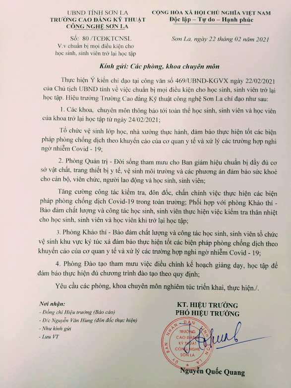 TRƯỜNG CAO ĐẲNG KỸ THUẬT CÔNG NGHỆ SƠN LA