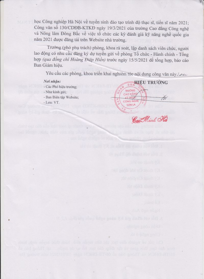 Công văn mời báo giá thu mua phế liệu các loại của trường Cao đẳng Kỹ thuật công nghệ Sơn La