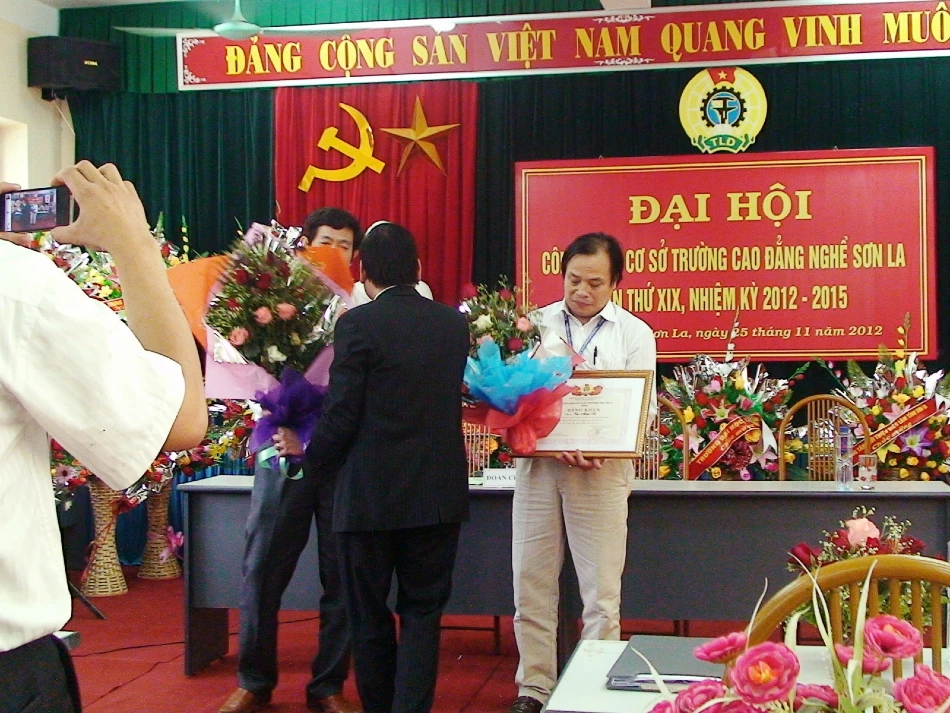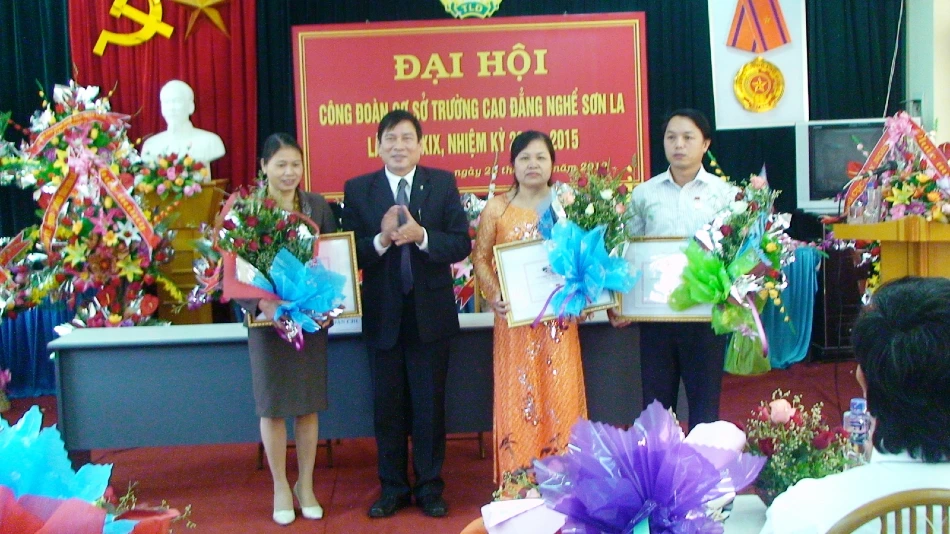 - Đồng chí Cao Minh Hà - Bí thư đảng ủy, hiệu trưởng nhà trường nhận bằng khen của Liên đoàn lao động tỉnh Sơn la