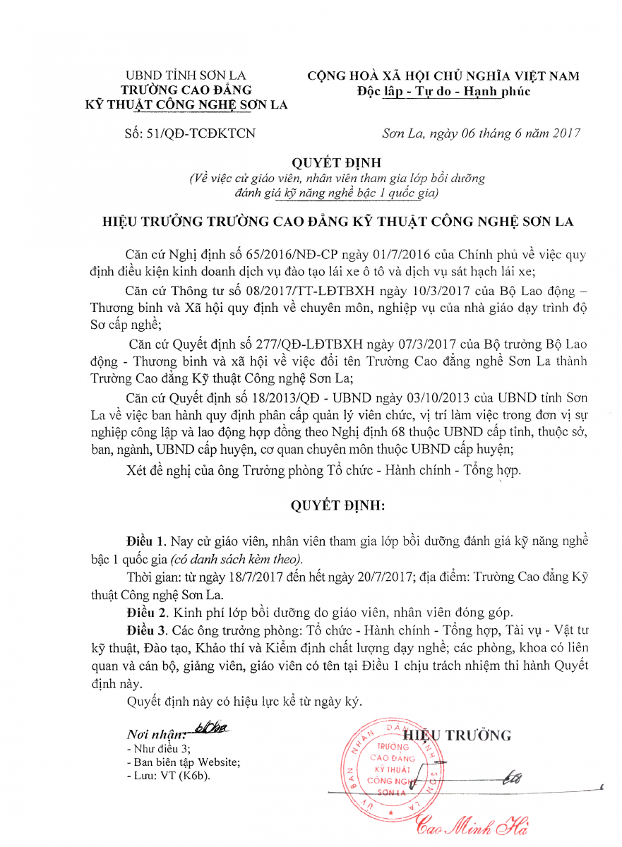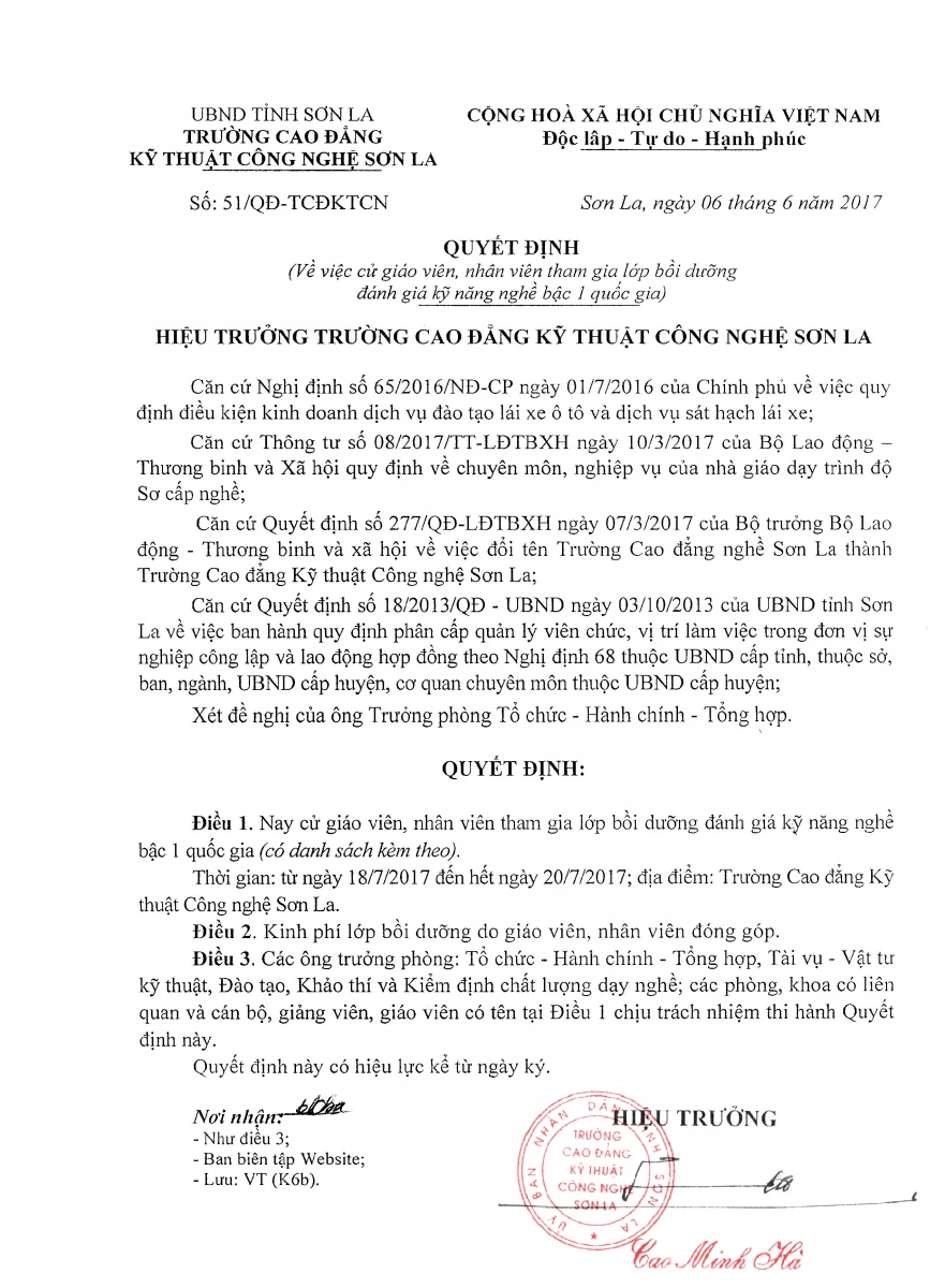 TRƯỜNG CAO ĐẲNG KỸ THUẬT CÔNG NGHỆ SƠN LA
