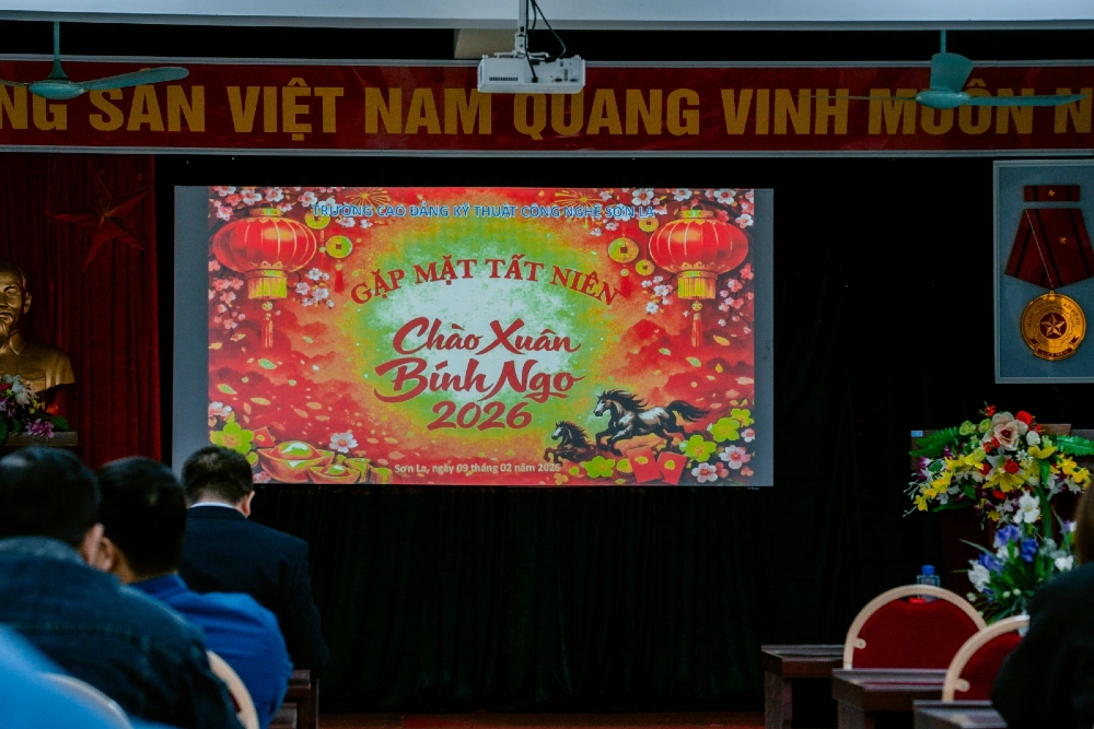 Ngày 09/02/2026, Trường Cao đẳng Kỹ thuật công nghệ Sơn La đã long trọng tổ chức gặp mặt Tất niên chào Xuân Bính Ngọ. Buổi gặp mặt là dịp ý nghĩa để toàn thể cán bộ, giảng viên, nhân viên Nhà trường cùng sum họp, sẻ chia niềm vui, nhìn lại hành trình một năm đã qua và gửi gắm những kỳ vọng tốt đẹp cho năm mới đang đến.