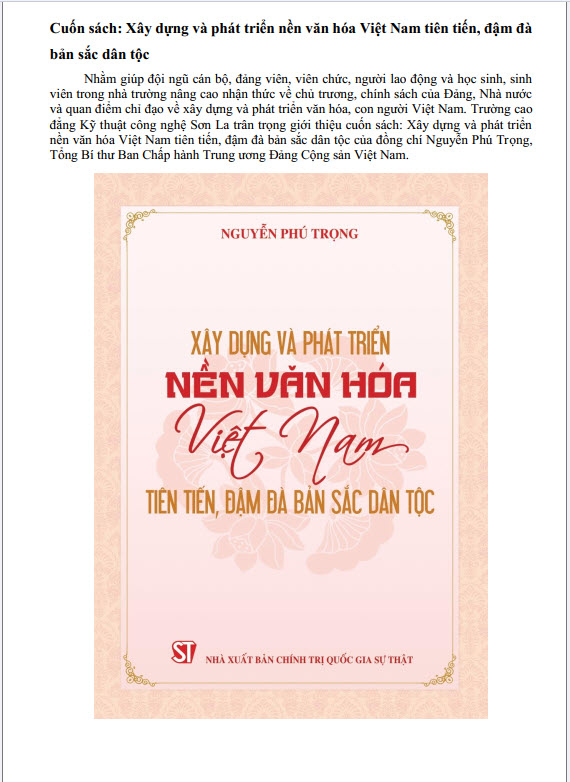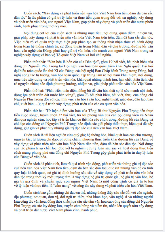 Giới thiệu cuốn sách Xây dựng và phát triển nền văn hóa Việt Nam tiên tiến, đậm đà bản sắc dân tộc.