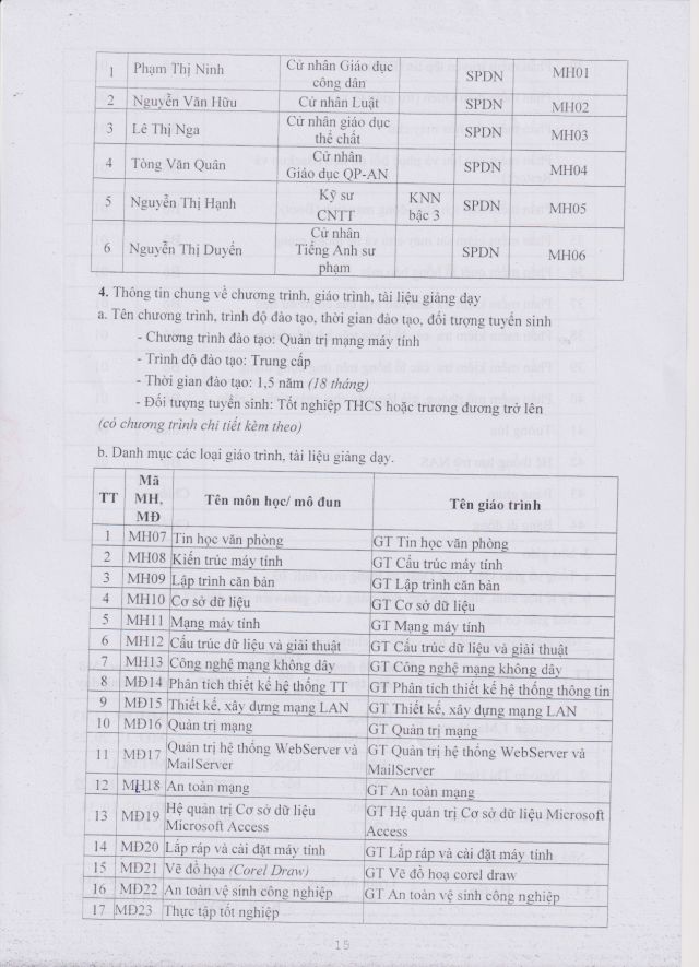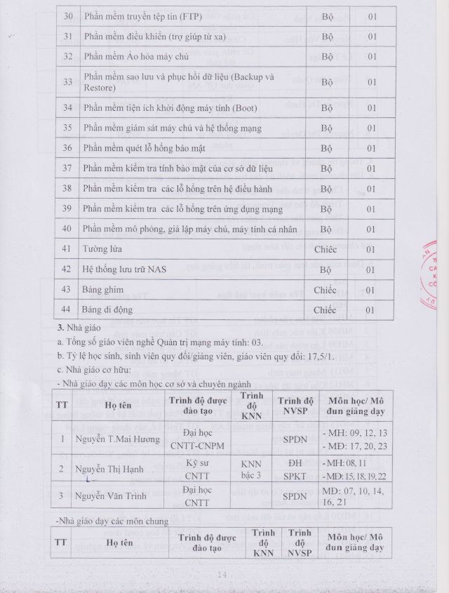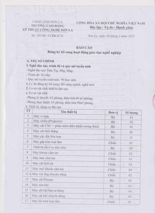 Căn cứ Công văn số 1857/TCGDNN-PCTT ngày 17/8/2020 của Tổng cục giáo dục nghề nghiệp về việc công khai các điều kiên đảm bảo tổ chức hoạt động giáo dục nghề nghiệp; Trường Cao đẳng Kỹ thuật công nghệ Sơn La báo cáo công khai các điều kiện đảm bảo tổ chức hoạt động GDNN như sau: