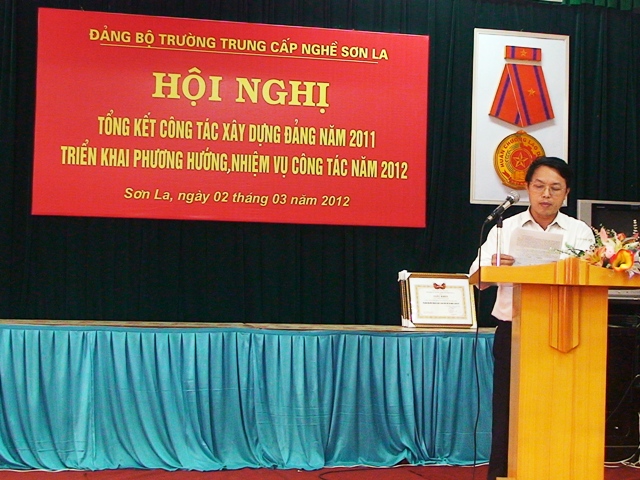 Chiều ngày 02 tháng 03 năm 2012, Đảng bộ Trường trung cấp nghề Sơn la tổ chức Hội nghị Tổng kết công tác xây dựng Đảng năm 2011 và triển khai phương hướng nhiệm vụ năm 2012. Tham dự Hội nghị có thầy Cao Minh Hà- Bí thư Đảng ủy, thầy Nguyễn Bá Vỵ- Phó Bí thư Đảng ủy.