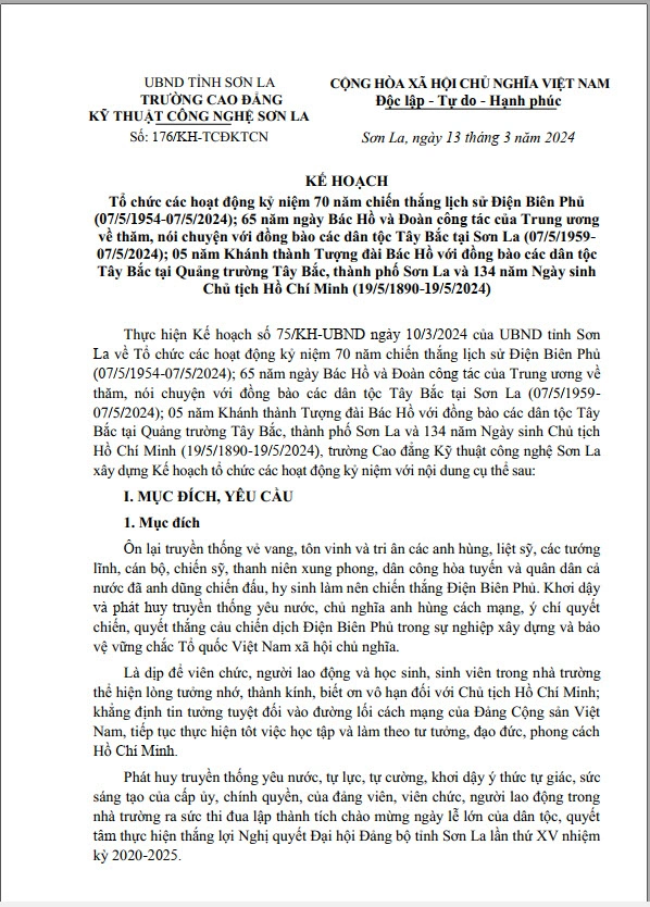 TRƯỜNG CAO ĐẲNG KỸ THUẬT CÔNG NGHỆ SƠN LA