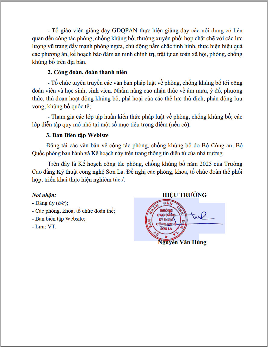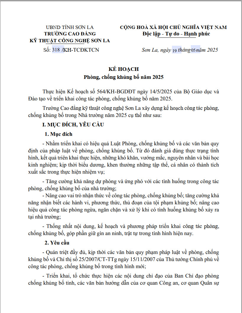TRƯỜNG CAO ĐẲNG KỸ THUẬT CÔNG NGHỆ SƠN LA