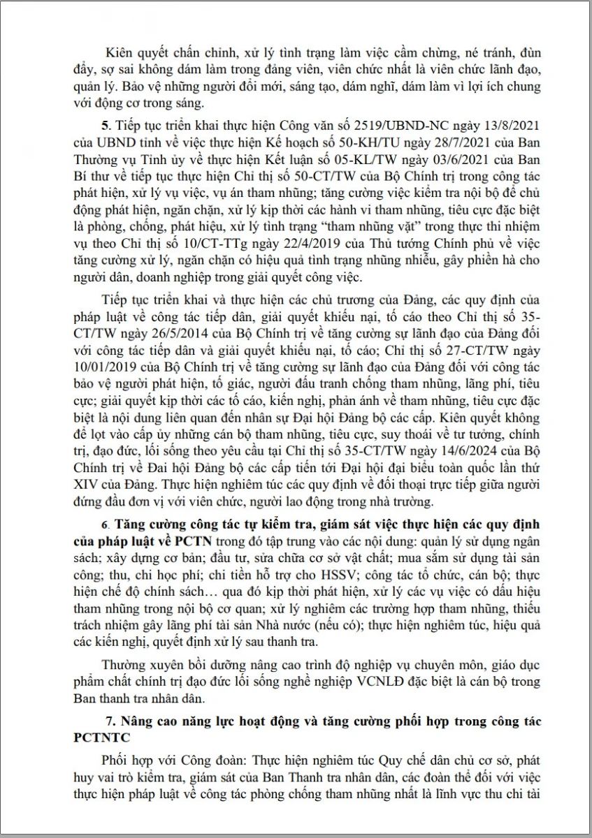 KẾ HOẠCH 35 THỰC HIỆN PHÒNG CHỐNG THAM NHŨNG, TIÊU CỰC NĂM 2025