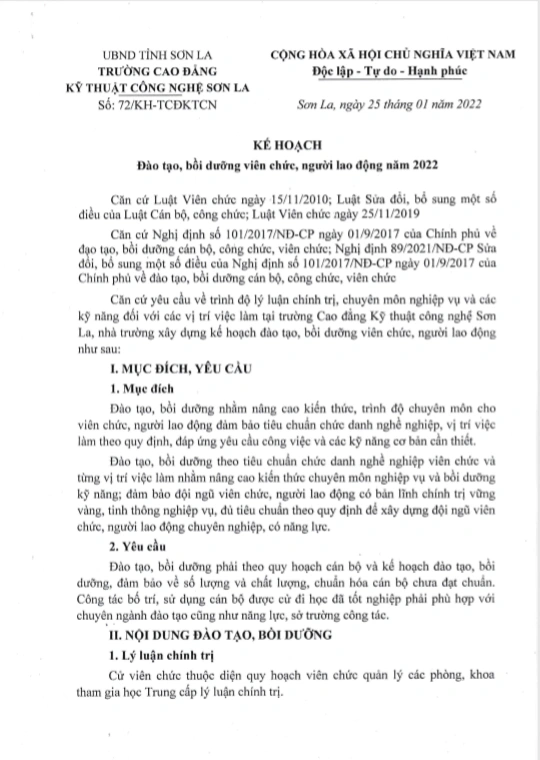 Kế hoạch 72 đào tạo, bồi dưỡng viên chức, người lao động 2022