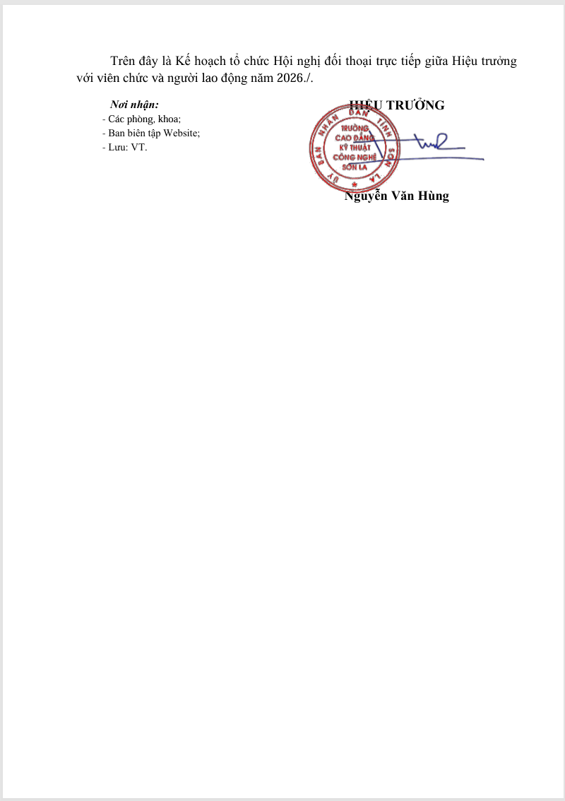 Kế hoạch tiếp công dân năm 2026 của trường Cao đẳng Kỹ thuật công nghệ Sơn La