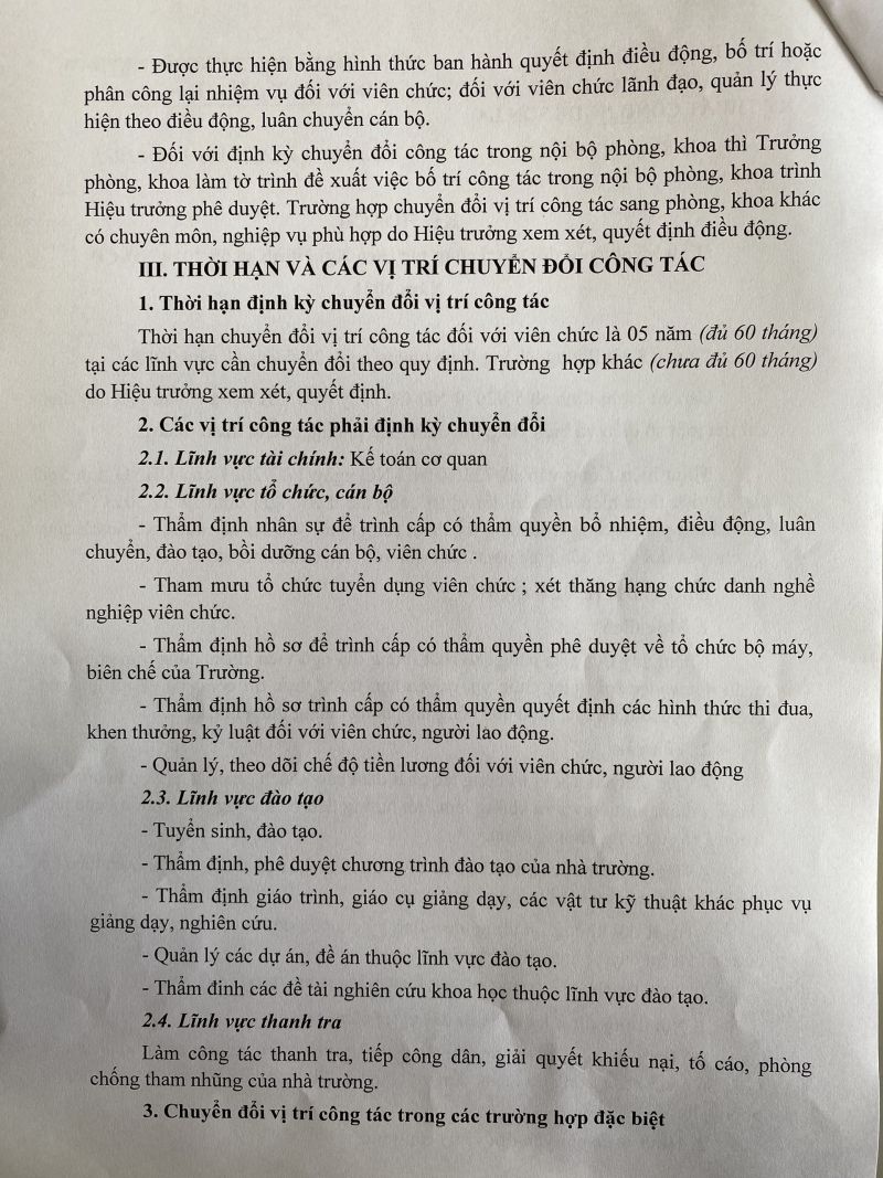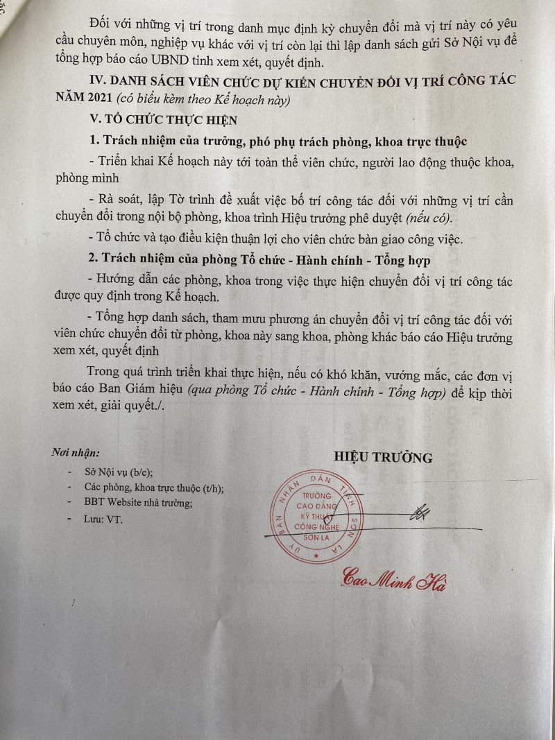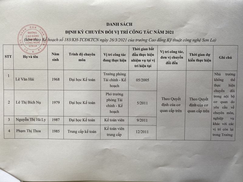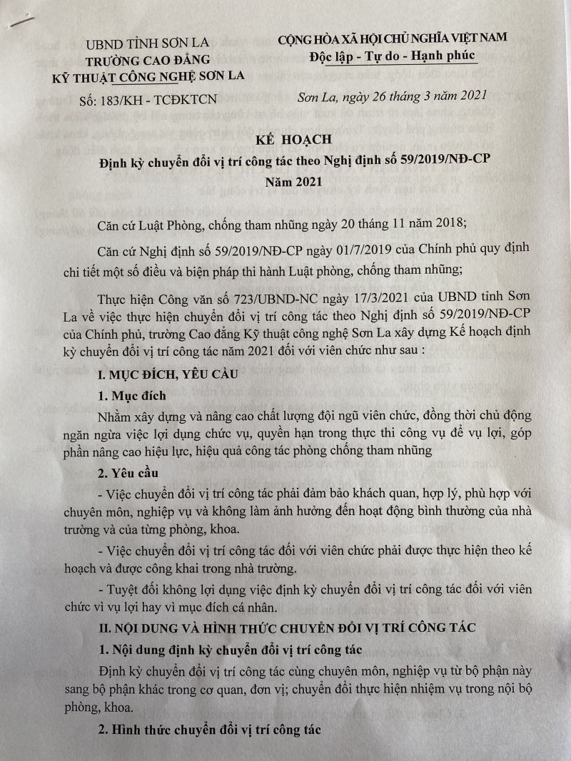 Kế hoạch định kỳ chuyển đổi vị trí công tác theo nghị định 59/2019/NĐ-CP năm 2021