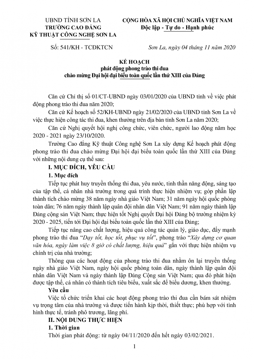 TRƯỜNG CAO ĐẲNG KỸ THUẬT CÔNG NGHỆ SƠN LA