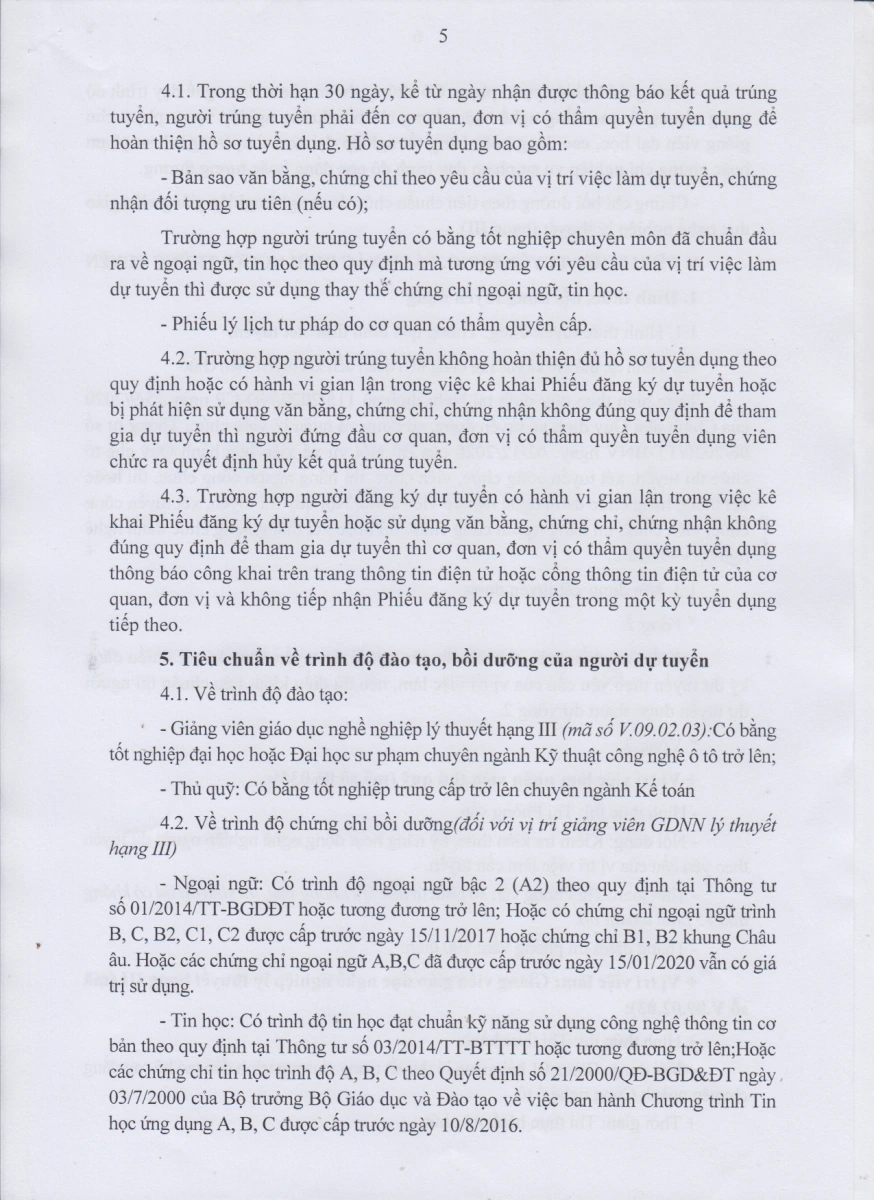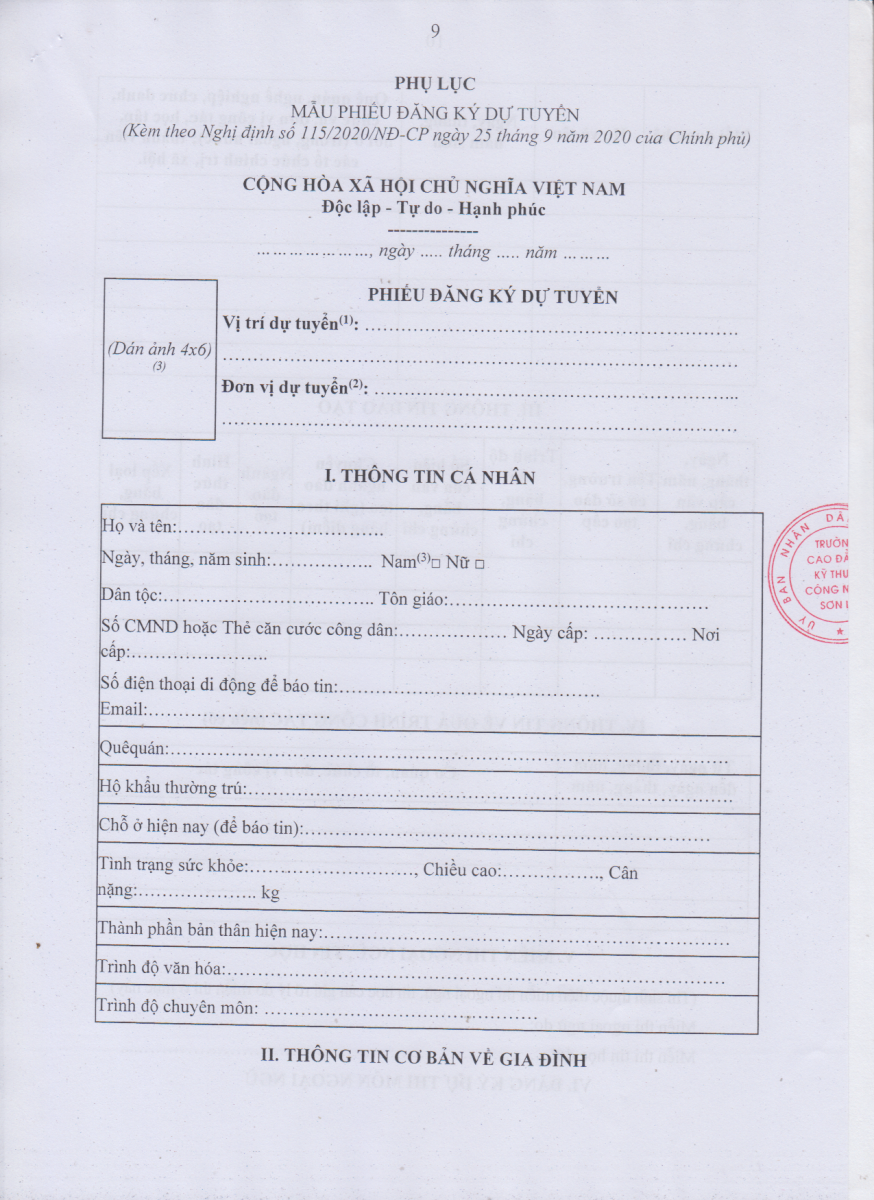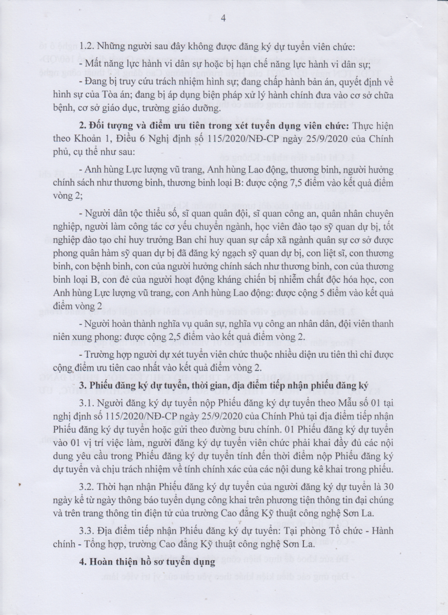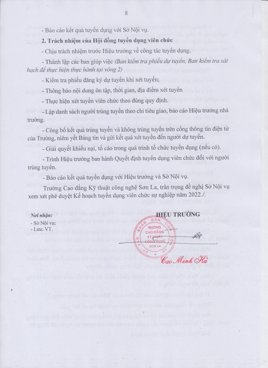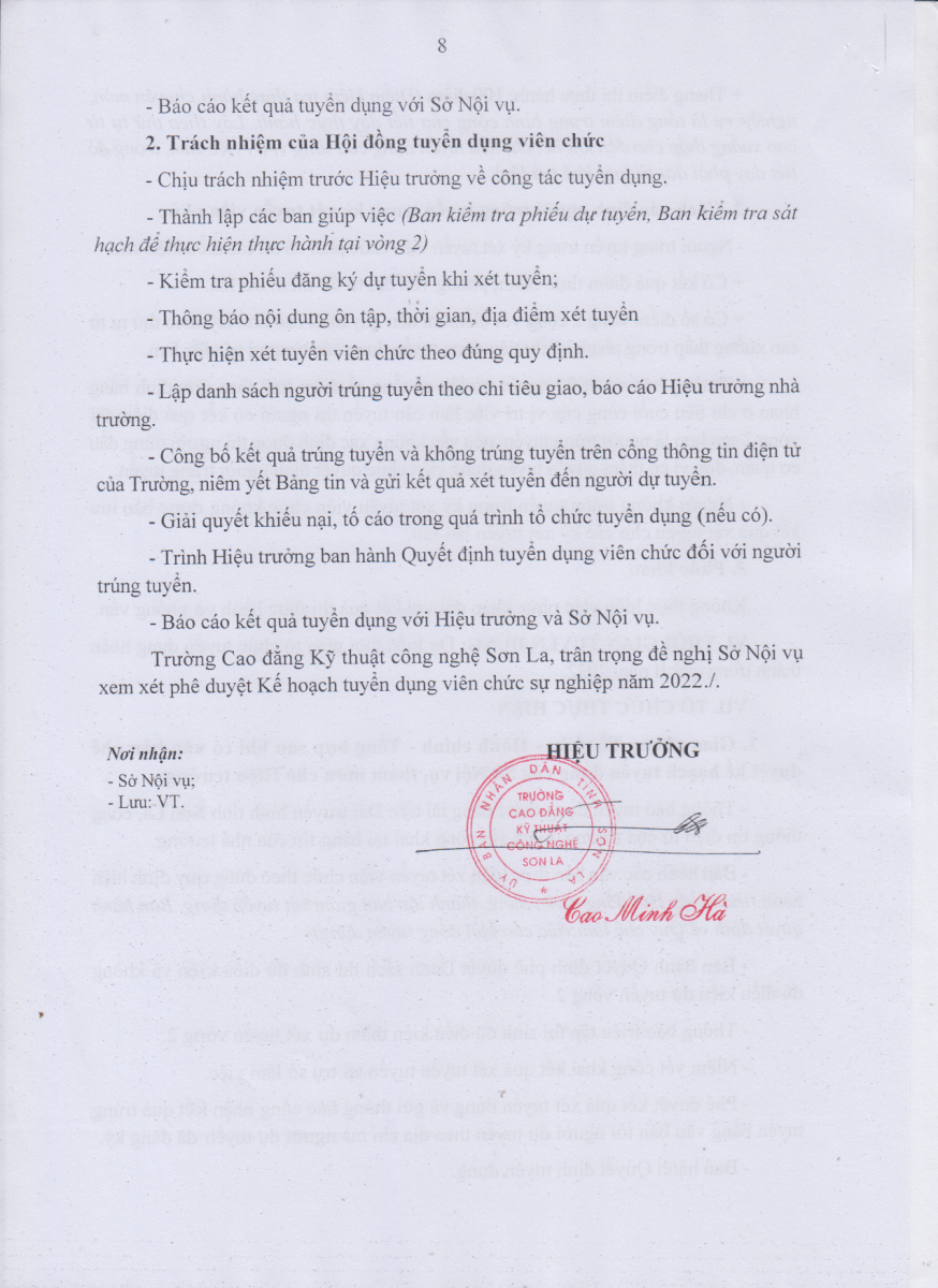 Kế hoạch số 68/KH-TCĐKTCN ngày 24/01/2022 của Trường Cao đẳng kỹ thuật công nghệ Sơn La về việc tuyển dụng viên chức năm 2022