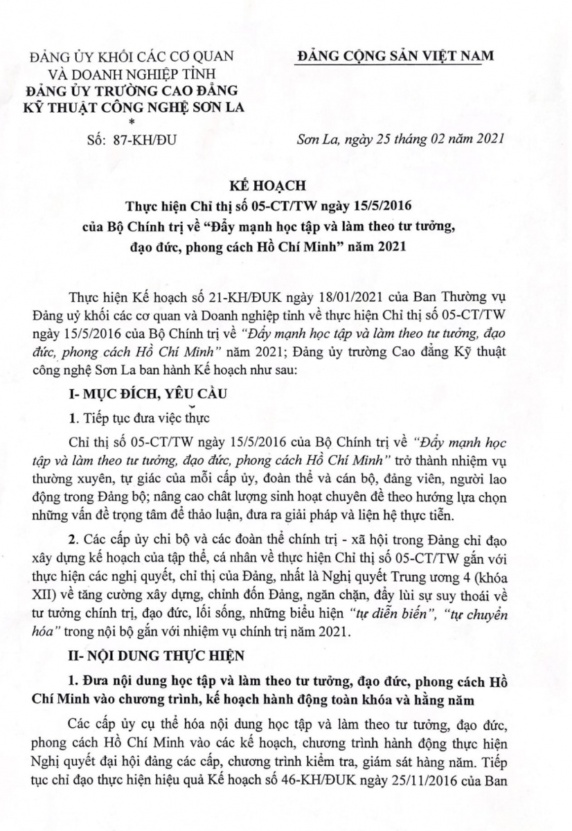 Kế hoạch số 87-KH/ĐU ngày 25/02/2021