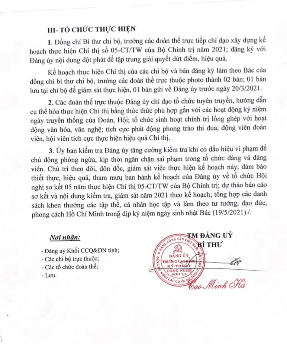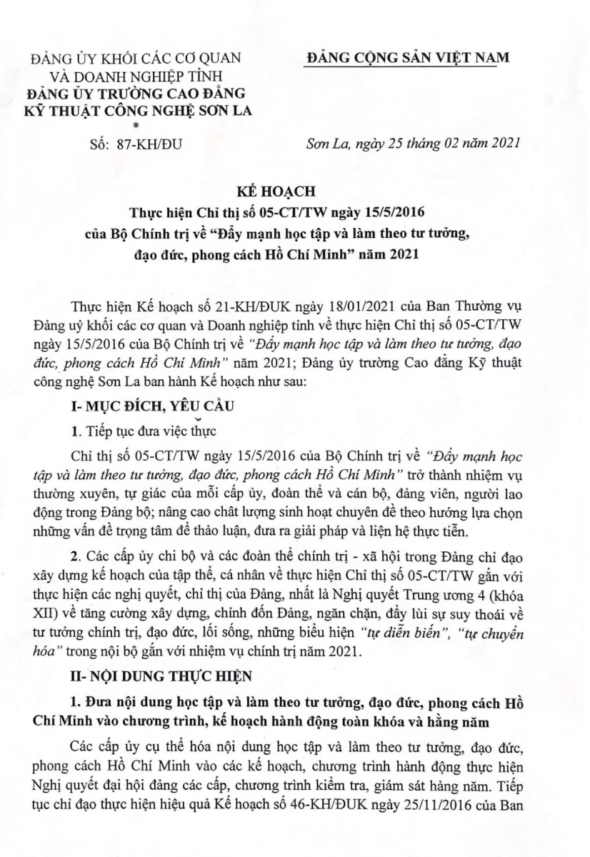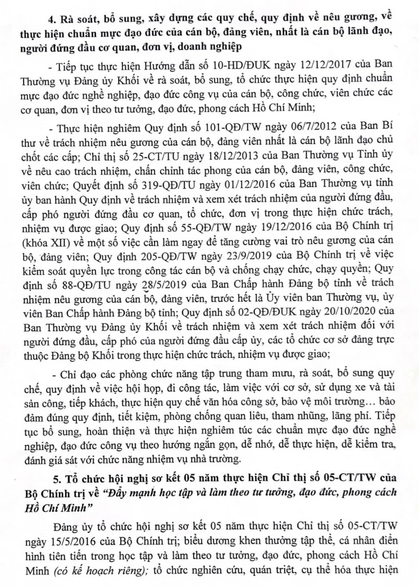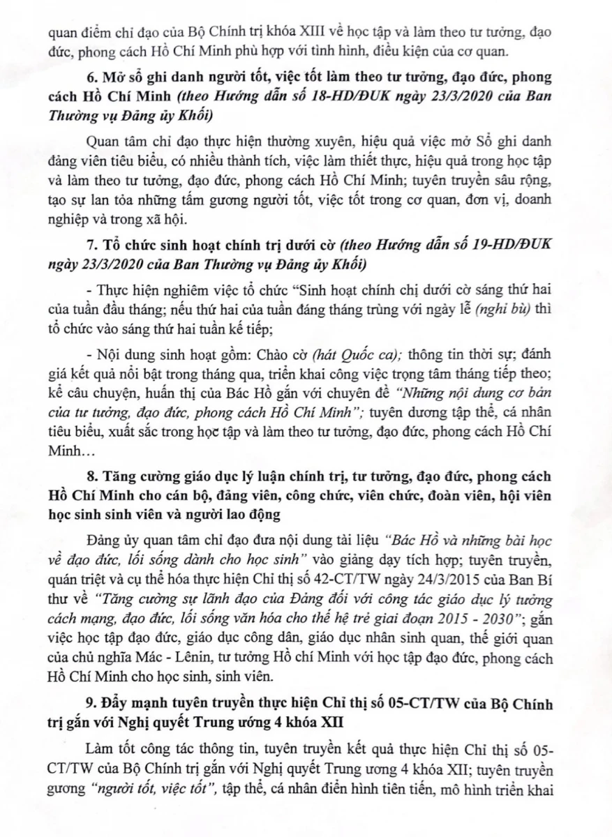 Thực hiện Chỉ thị 05-CT/TW ngày 15/5/2016 của Bộ Chính trị về "Đẩy mạnh học tập và làm theo tư tưởng, đạo đức, phong các Hồ Chí Minh" năm 2021.