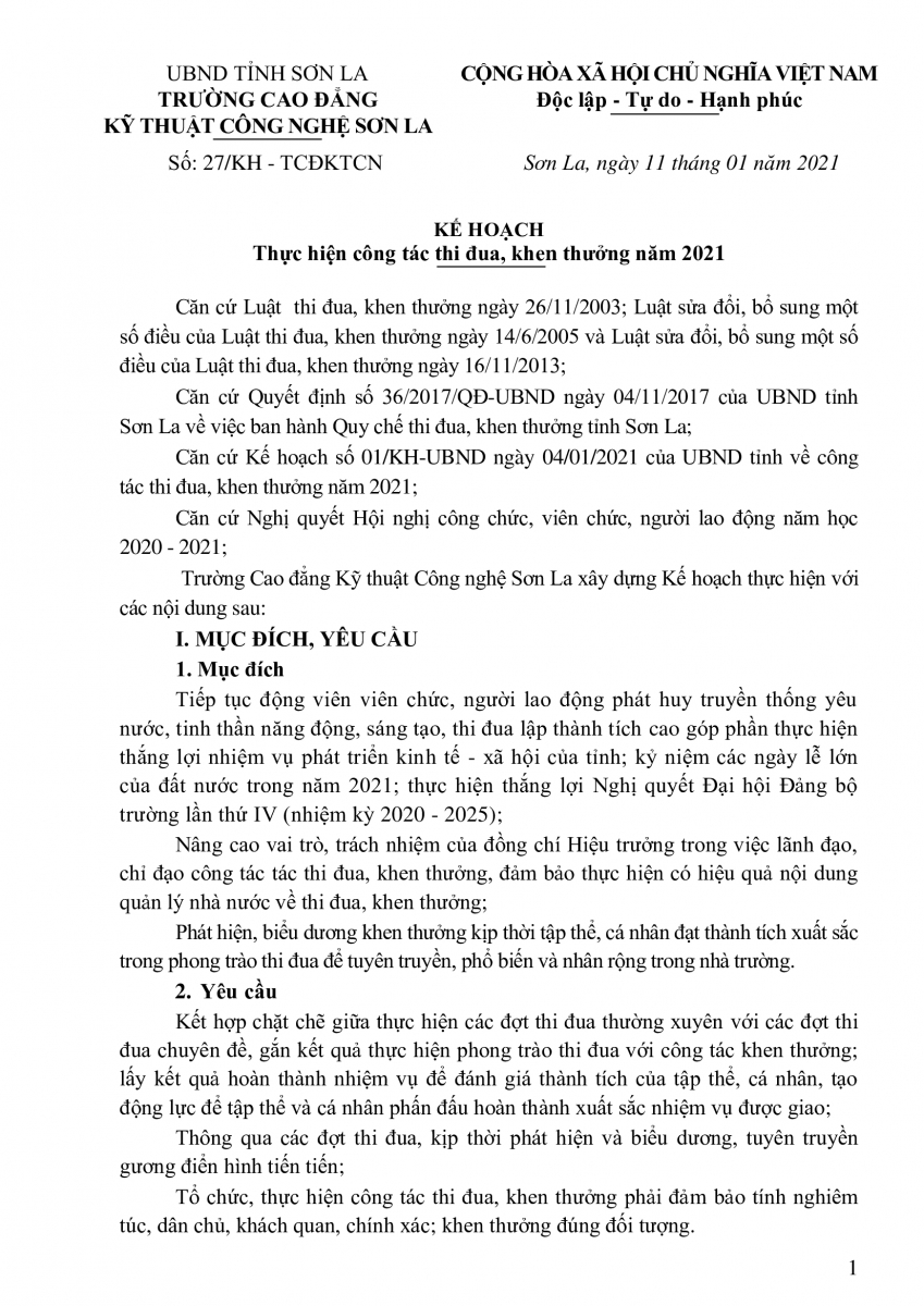 TRƯỜNG CAO ĐẲNG KỸ THUẬT CÔNG NGHỆ SƠN LA