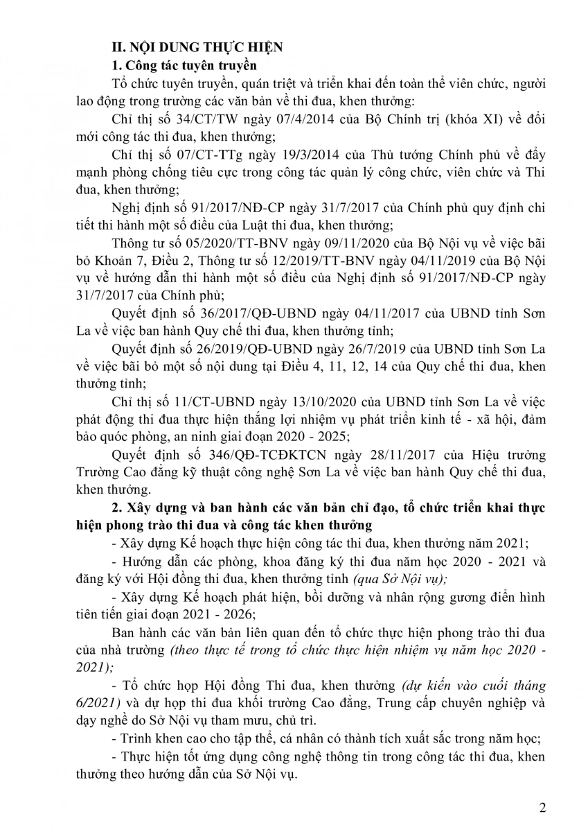Kế hoạch thực hiện công tác thi đua, khen thưởng năm 2021