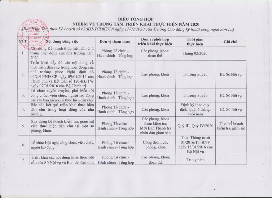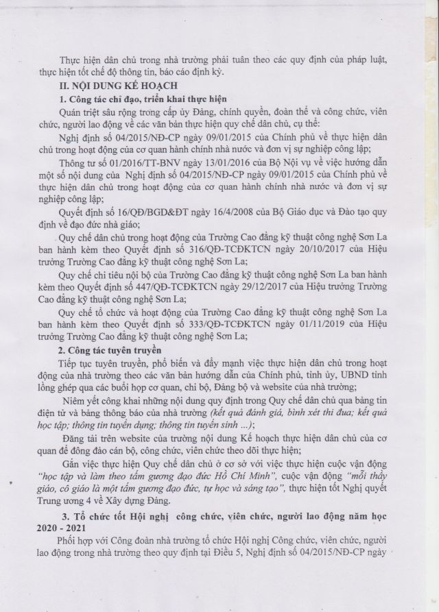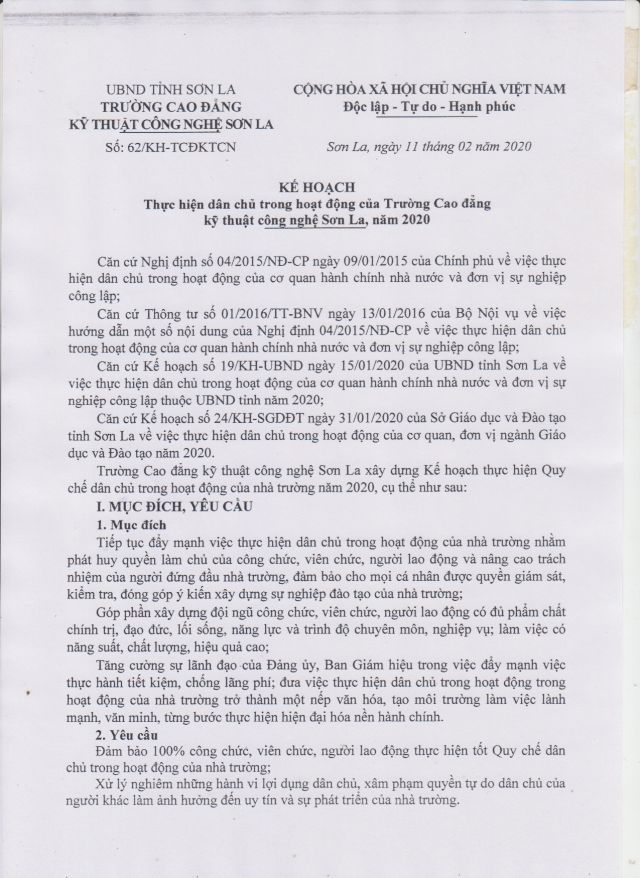 TRƯỜNG CAO ĐẲNG KỸ THUẬT CÔNG NGHỆ SƠN LA