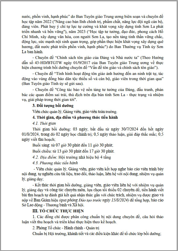 KẾ HOẠCH TỔ CHỨC BỒI DƯỠNG HÈ CHO VIÊN CHỨC QUẢN LÝ, GIẢNG VIÊN, GIÁO VIÊN NĂM 2024