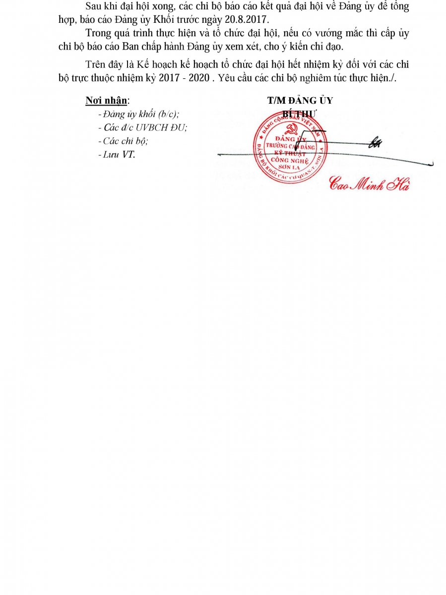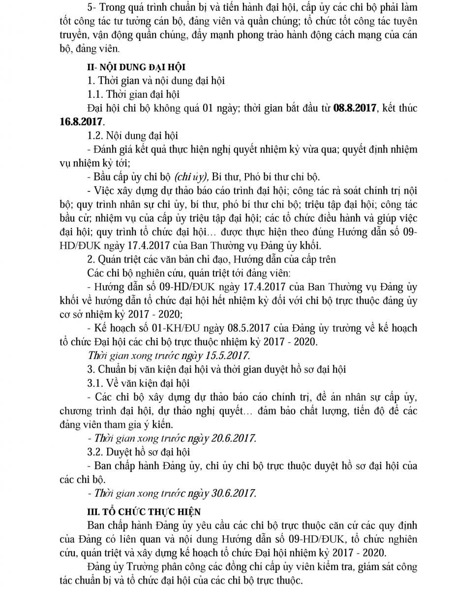 Kế hoạch tổ chức Đại hội các chi bộ trực thuộc nhiệm kỳ 2017 - 2020
