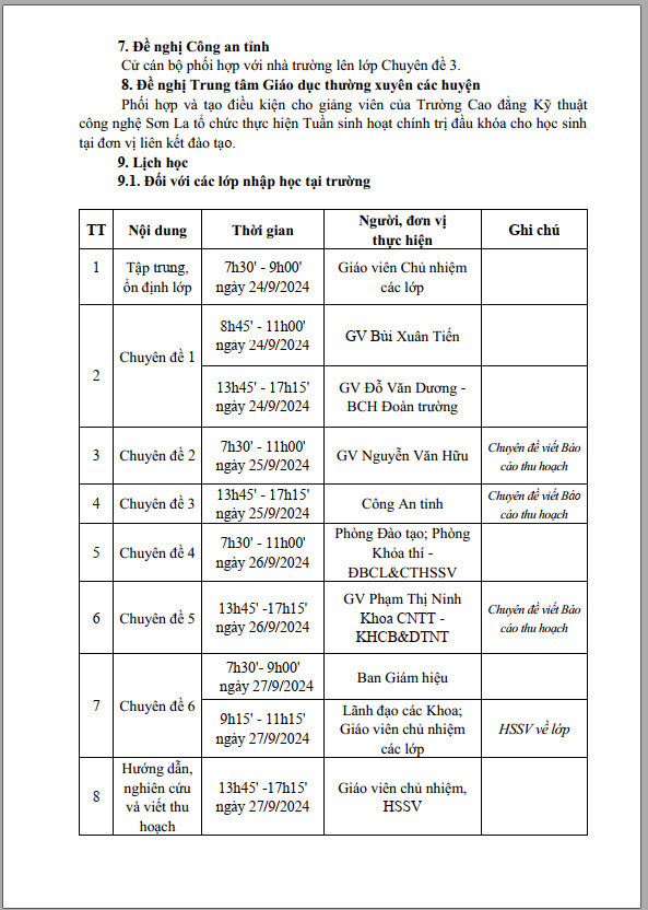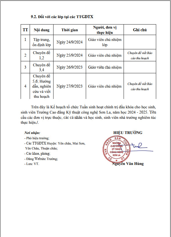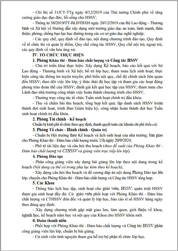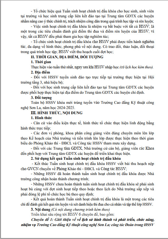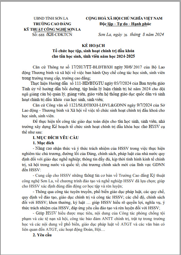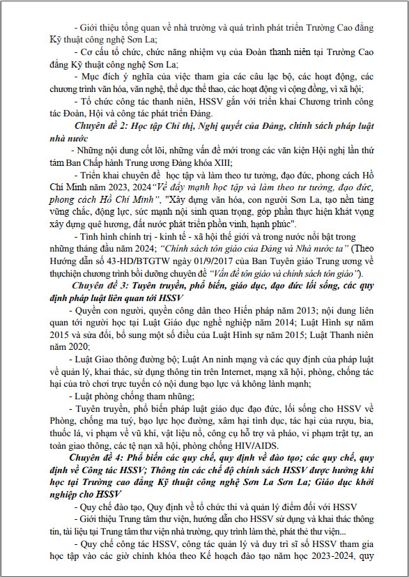KẾ HOẠCH TỔ CHỨC HỌC TẬP, SINH HOẠT CHÍNH TRỊ ĐẦU KHOÁ CHO TÂN HỌC SINH, SINH VIÊN NĂM HỌC 2023 - 2024