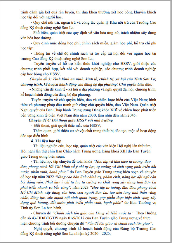 TRƯỜNG CAO ĐẲNG KỸ THUẬT CÔNG NGHỆ SƠN LA