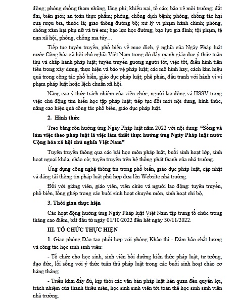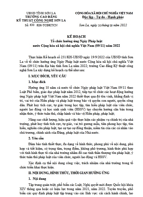 Kế hoạch tổ chức hưởng ứng Ngày Pháp luật nước Cộng hòa xã hội chủ nghĩa Việt Nam (09/11) năm 2022