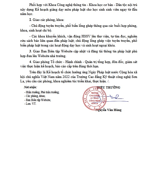 TRƯỜNG CAO ĐẲNG KỸ THUẬT CÔNG NGHỆ SƠN LA