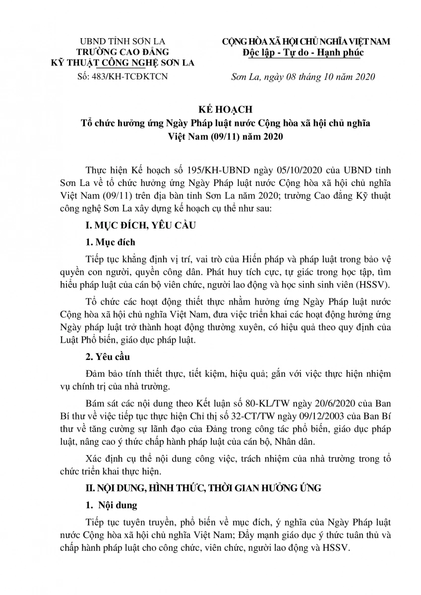 TRƯỜNG CAO ĐẲNG KỸ THUẬT CÔNG NGHỆ SƠN LA