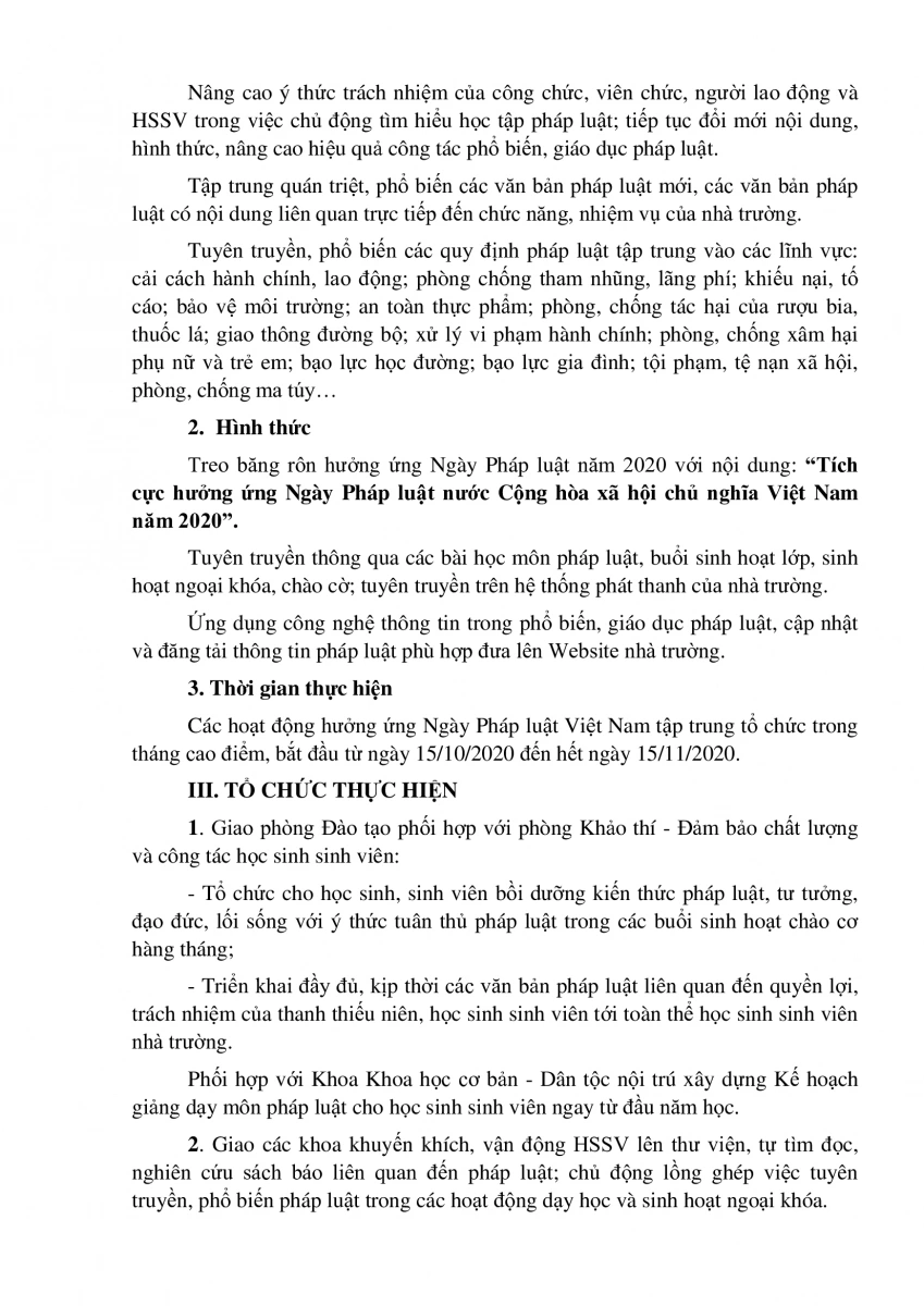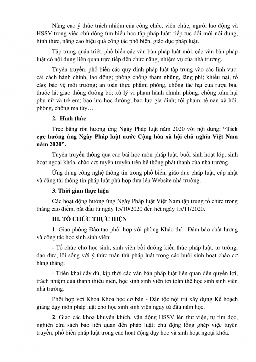 Kế hoạch tổ chức Ngày Pháp luật nước Công hòa xã hội chủ nghĩa Việt Nam năm 2020