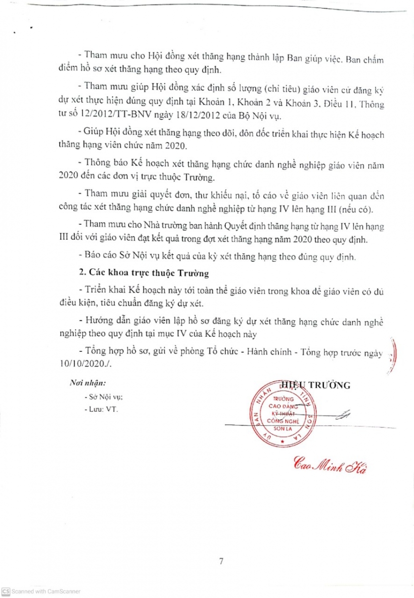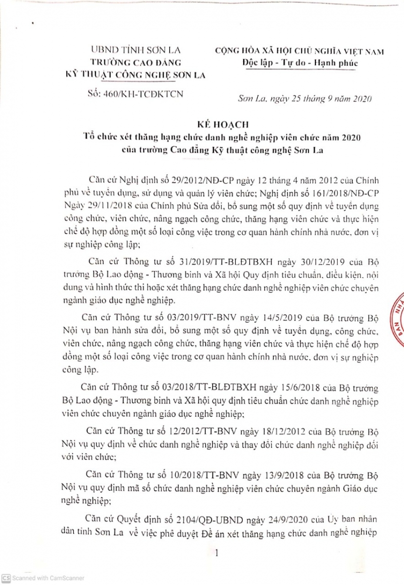 Kế hoạch tổ chức xét thăng hạng chức danh nghề nghiệp viên chức năm 2020 của Trường Cao đẳng Kỹ thuật công nghệ Sơn La