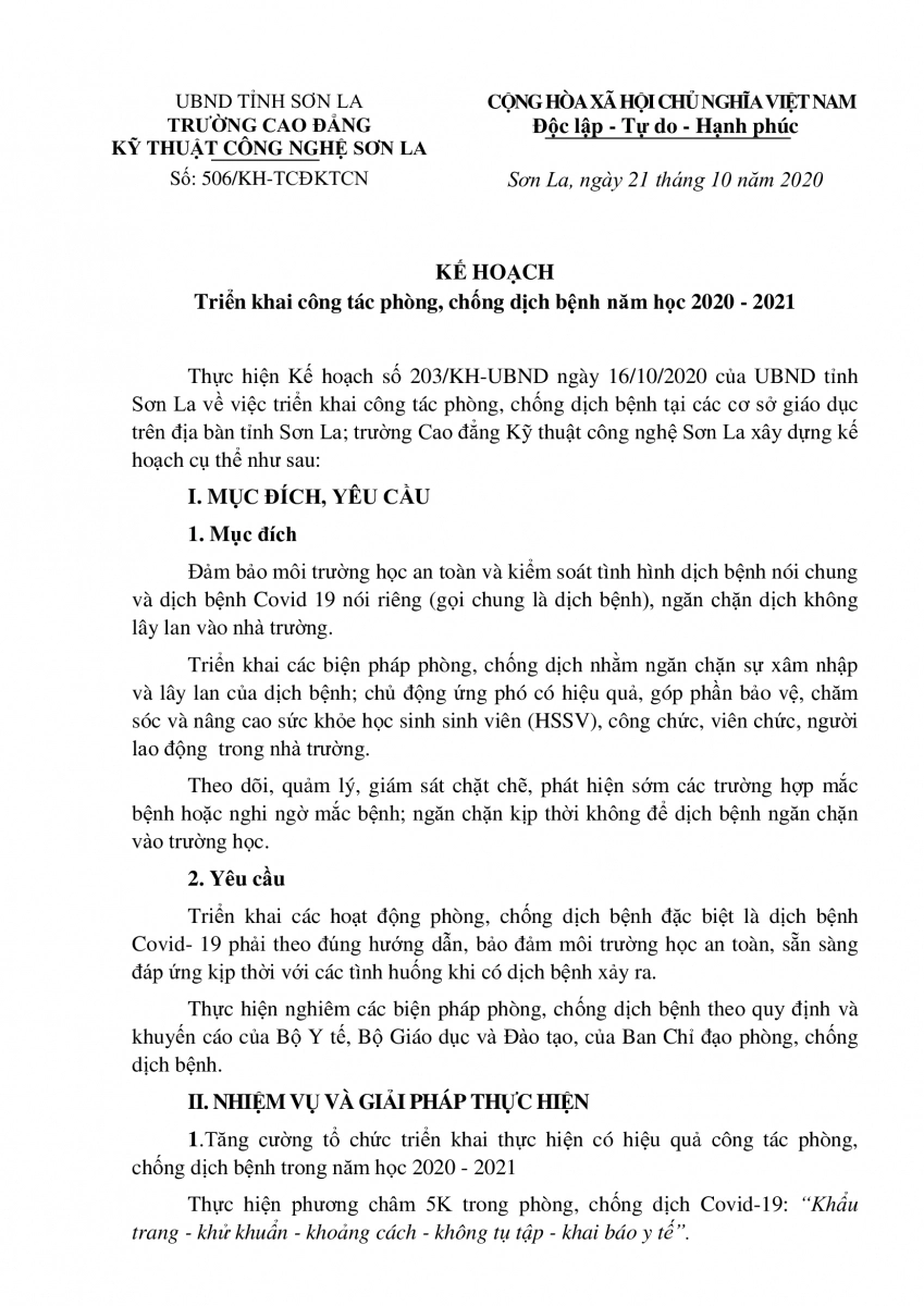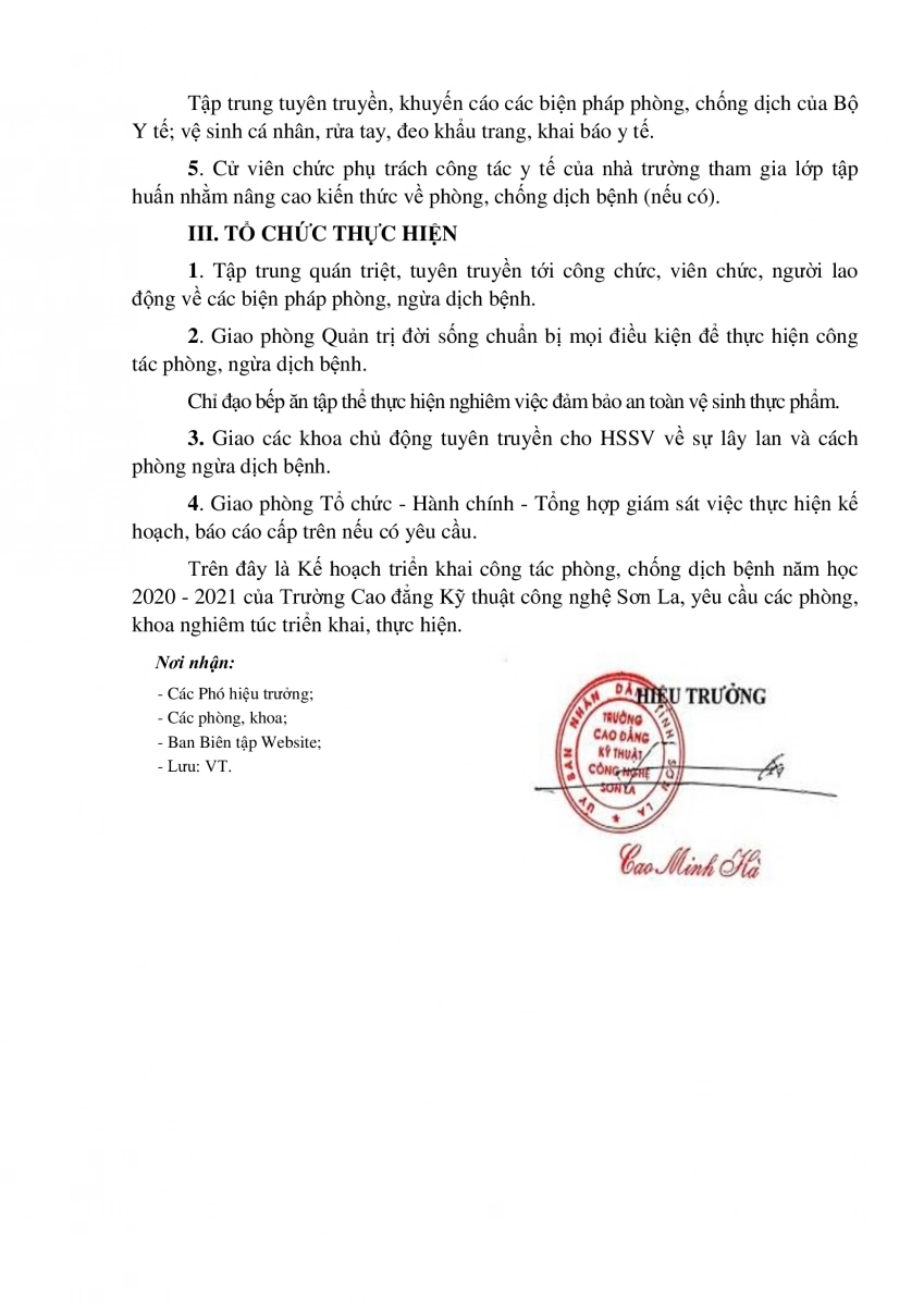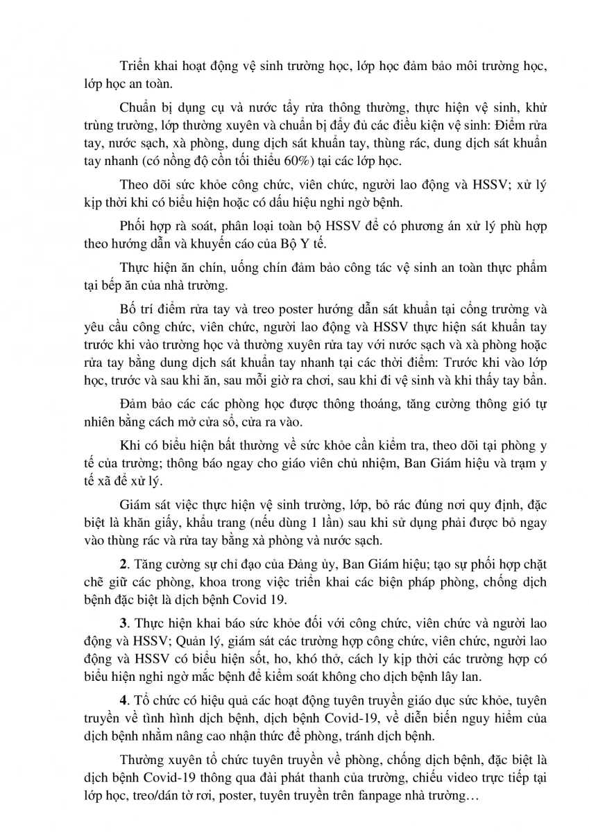 Kế hoạch triển khai công tác phòng chống dịch bệnh năm học 2020 - 2021