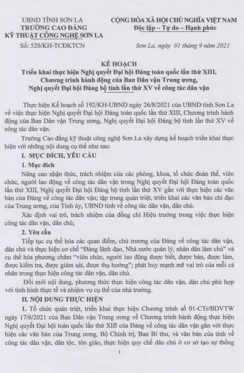 Kế hoạch tiếp công dân năm 2026 của trường Cao đẳng Kỹ thuật công nghệ Sơn La