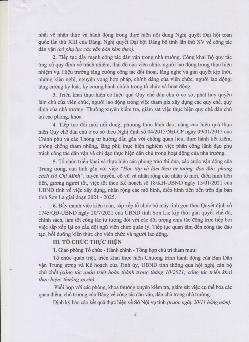 Kế hoạch triển khai thực hiện Nghị quyết Đại hội Đảng toàn quốc lần thứ XIII, Chương trình hành động của Ban Dân vận Trung ương, Nghị quyết Đại hội Đảng bộ tỉnh lần thứ XV về công tác dân
