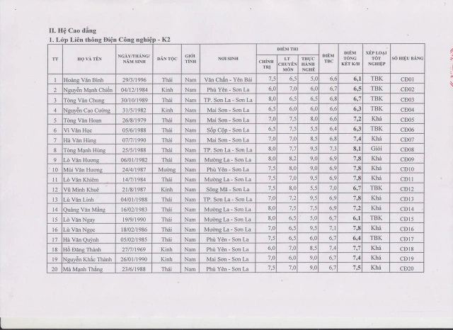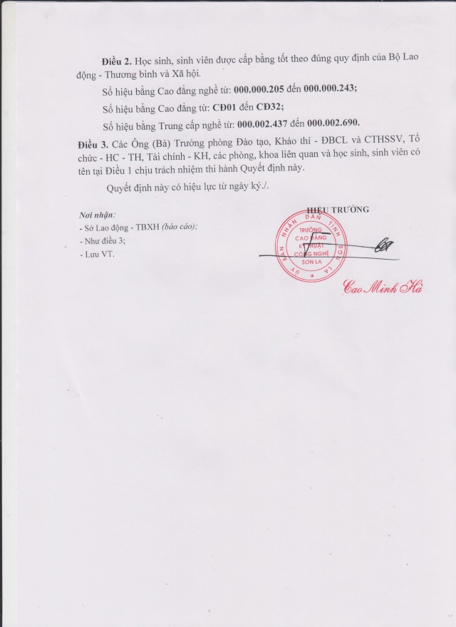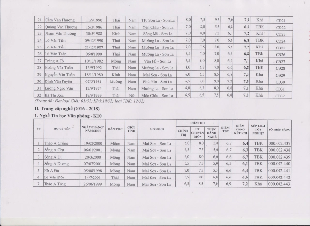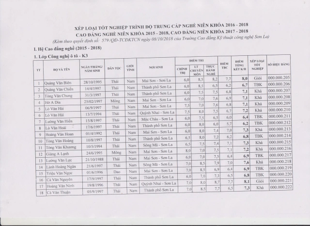 Quyết định công nhận tốt nghiệp và danh sách xếp loại tốt nghiệp các hệ: Trung cấp niên khóa 2016-2018, Cao đẳng niên khóa 2015-2018, Cao đẳng niên khóa 2017-2018.
