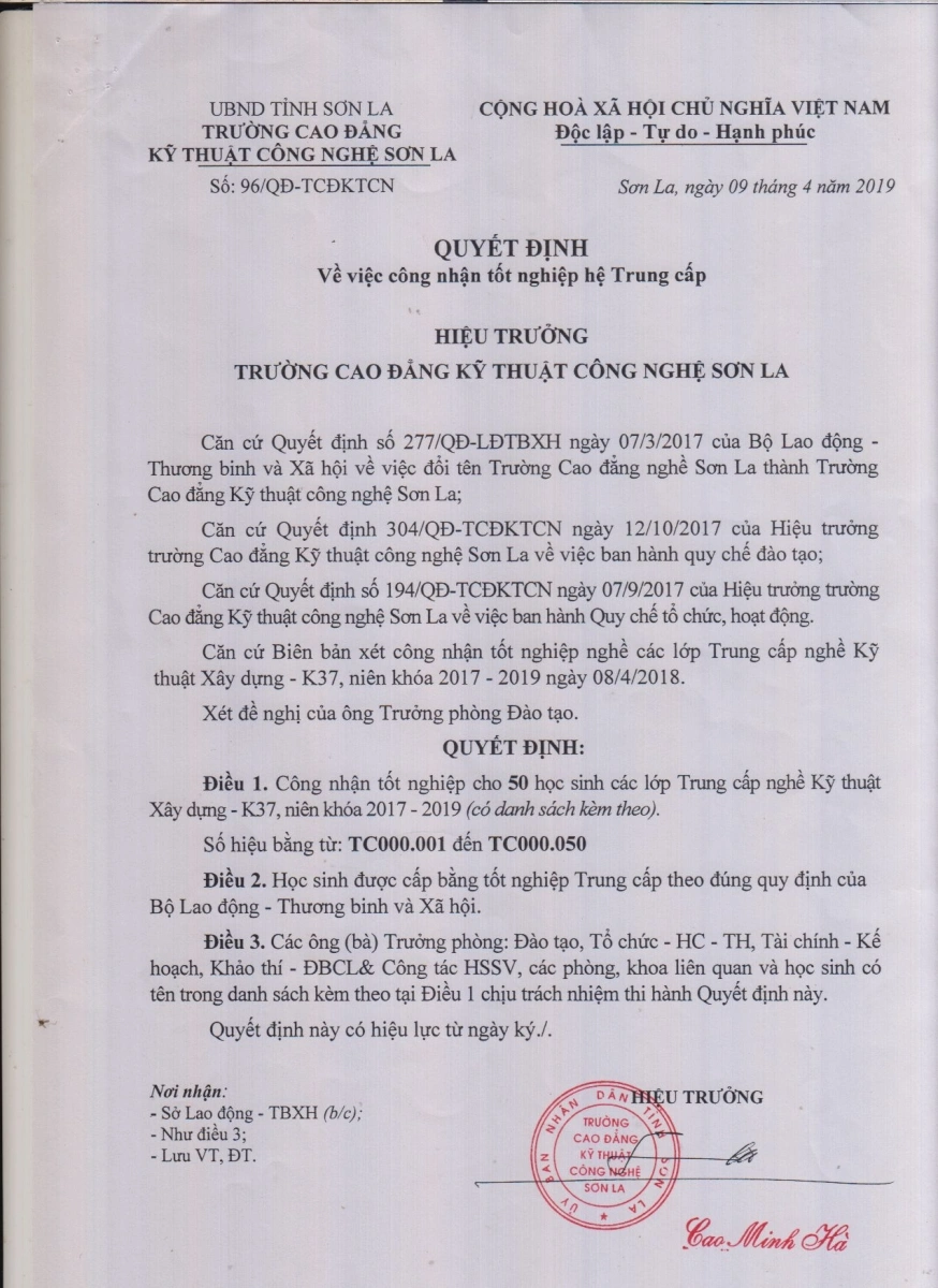 TRƯỜNG CAO ĐẲNG KỸ THUẬT CÔNG NGHỆ SƠN LA